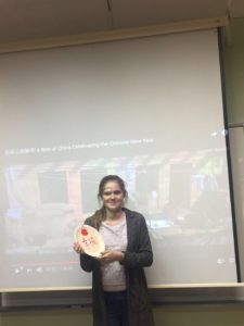 Then the volunteer teacher led us to understand the Spring Festival Spring Festival elements like couplets, blessing characters Fu福, ground fairs, red lanterns. After that,students had their own opportunity to design the “Chinese Plate”.The students lifted their achievements happily after finishing it. And then, introduce their design concept to others one by one.