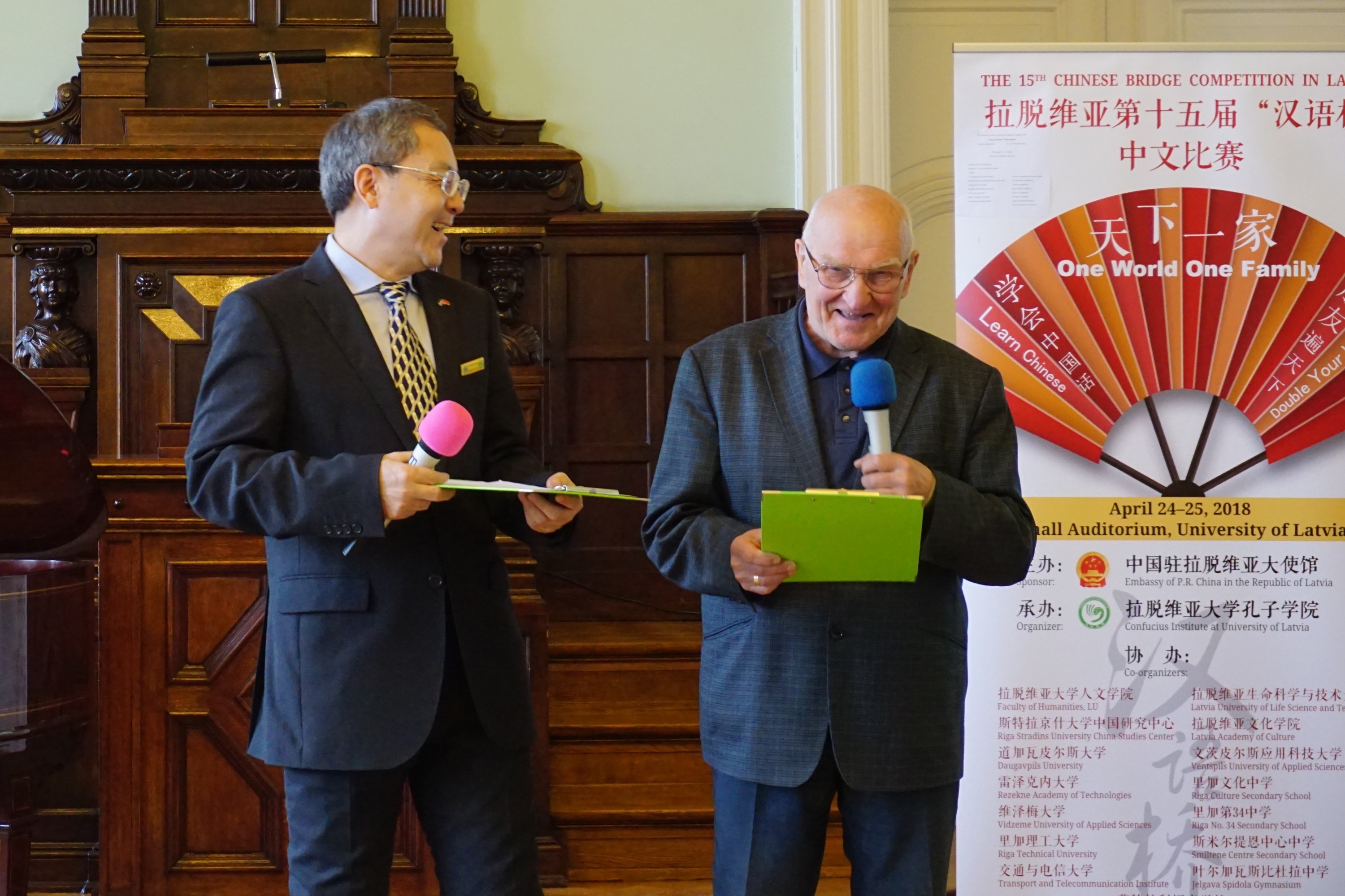 You will see two accompanying and inseparable figures in every Confucius Institute activities. The two directors are companies and take care with each other when participating in activities, for instance, the annual global Confucius Institute Conference, the Central and Eastern Europe Confucius Institute Joint Conference (Nordic-Baltic Countries Confucius Institute Conference), the Board Meeting of Confucius Institute at University of Latvia, and so on. Prof. Shang recalls his trip to Kunming in 2016 for the 11th Confucius Institute Conference with teary-eye, “At that time, I could not walk with pain in my knees. I was unable to walk except with a double crutch. I applied for a wheelchair at the airport. Prof. Pildegovics walked beside me carrying my two crutches along the way while airport staff pushed me with a wheelchair.” At Confucius Institute’s annual activities, such as Spring Festival Gala Show, Lantern Festival Show, Mid-Autumn Festival Show, Confucius Institute Day, opening ceremony, graduation ceremony and all the other activities, the two directors always deliver speech in two different languages but with the same text, which has become the tradition of Confucius Institute at University of Latvia .“The two directors have sent a friendly message of harmonious thinking and concerted action between the two sides of Confucius Institute at University of Latvia through their same text speech in two different languages.” said Chinese Counsellor Li Tao, on Lantern Festival in 2017.