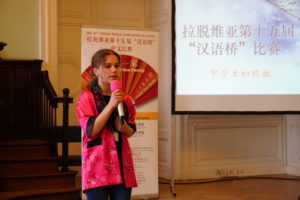 Local time 7:30 pm, there are two little girls who named Nicole (older sister) and Amelie (younger sister) show up quietly in beginner’s class for adult at Confucius Institute at University of Latvia. After looking around, they quietly sit behind Alexandra and begin to write Chinese homework.