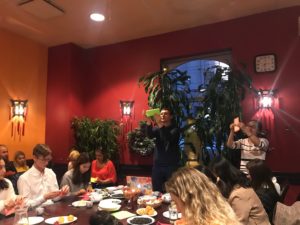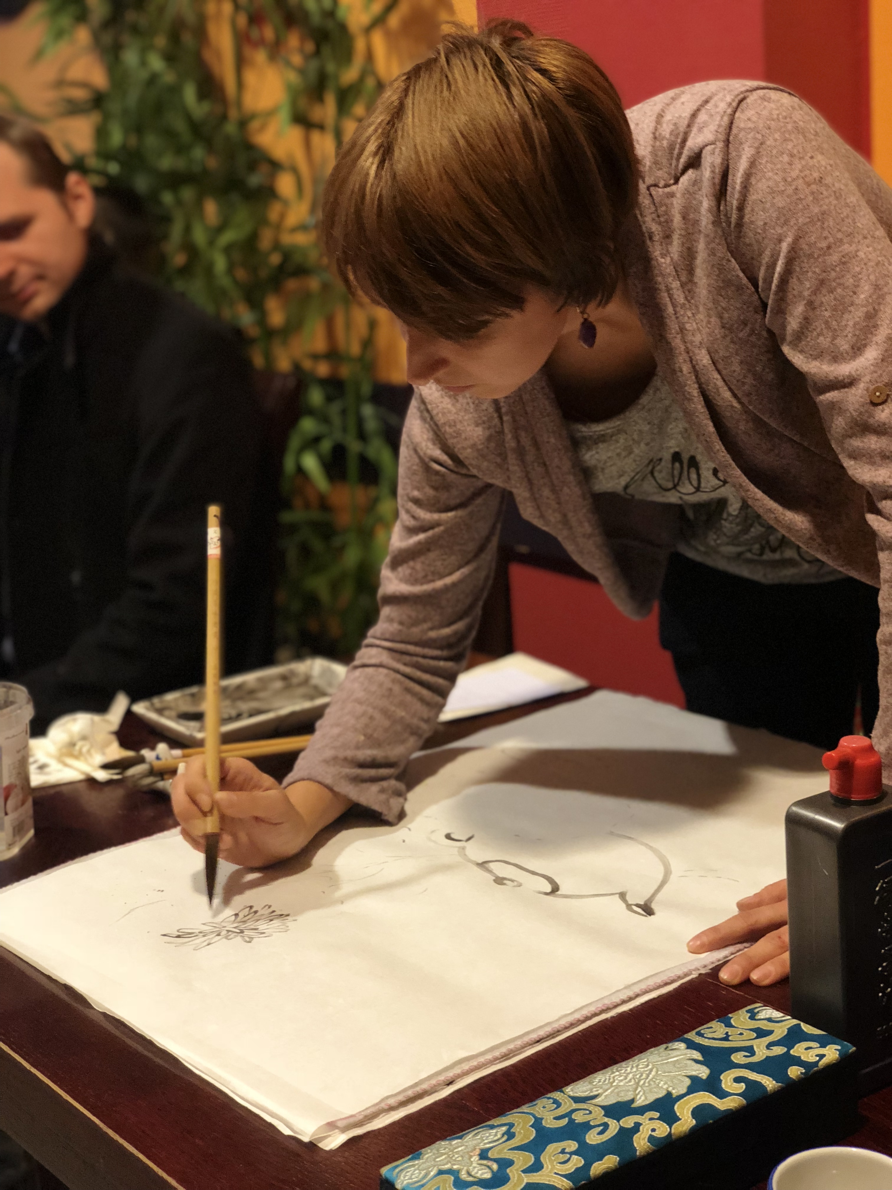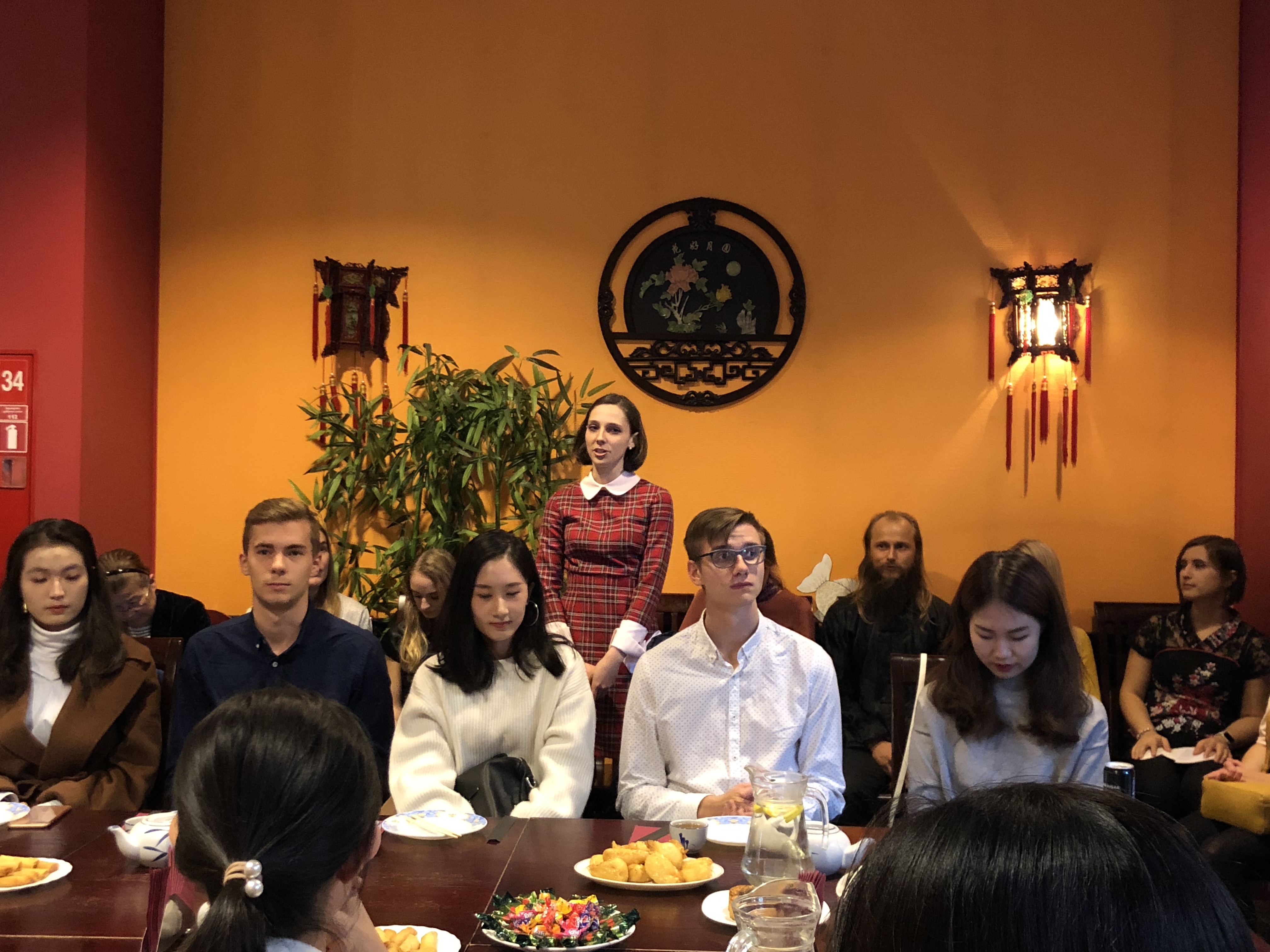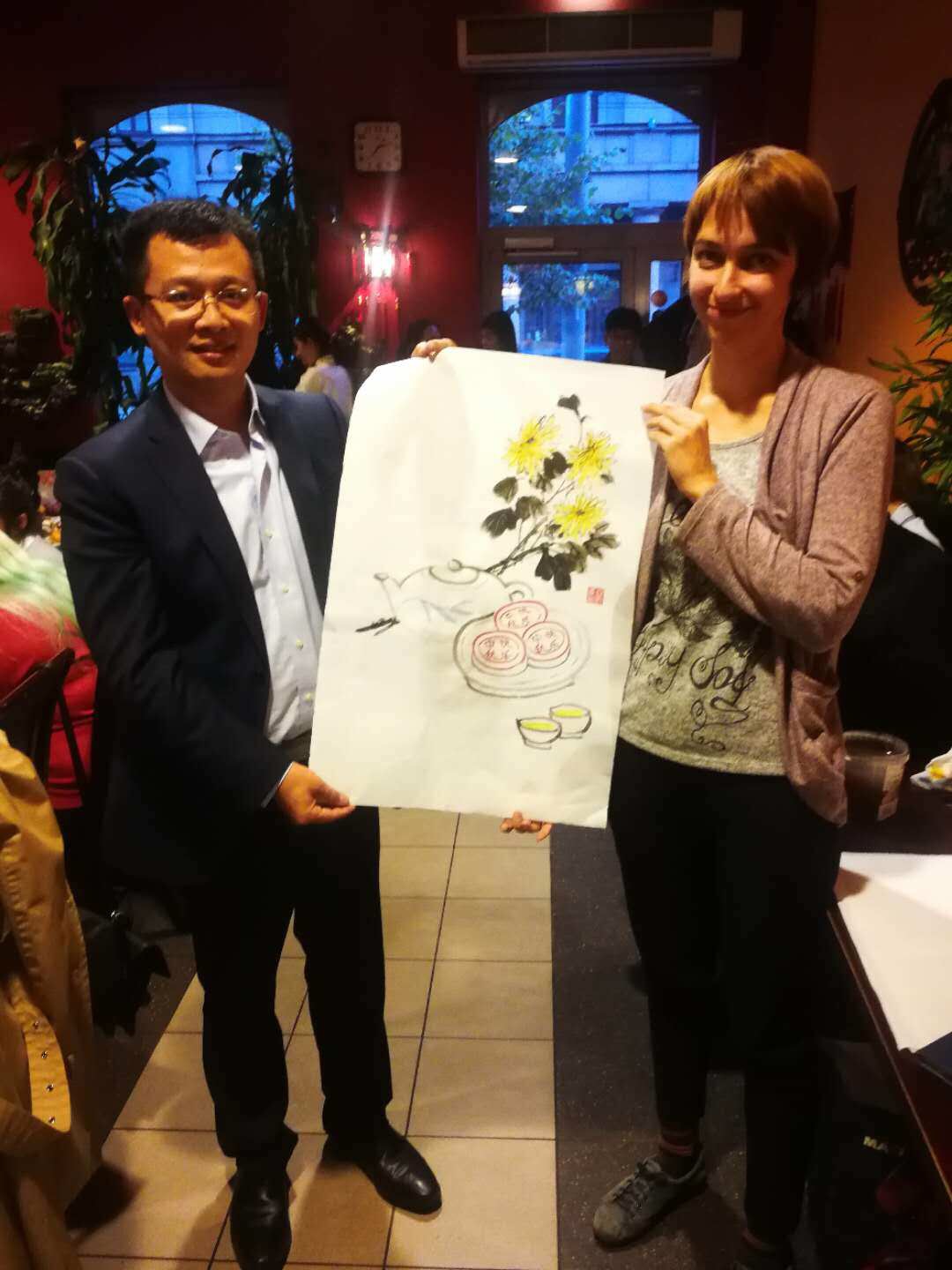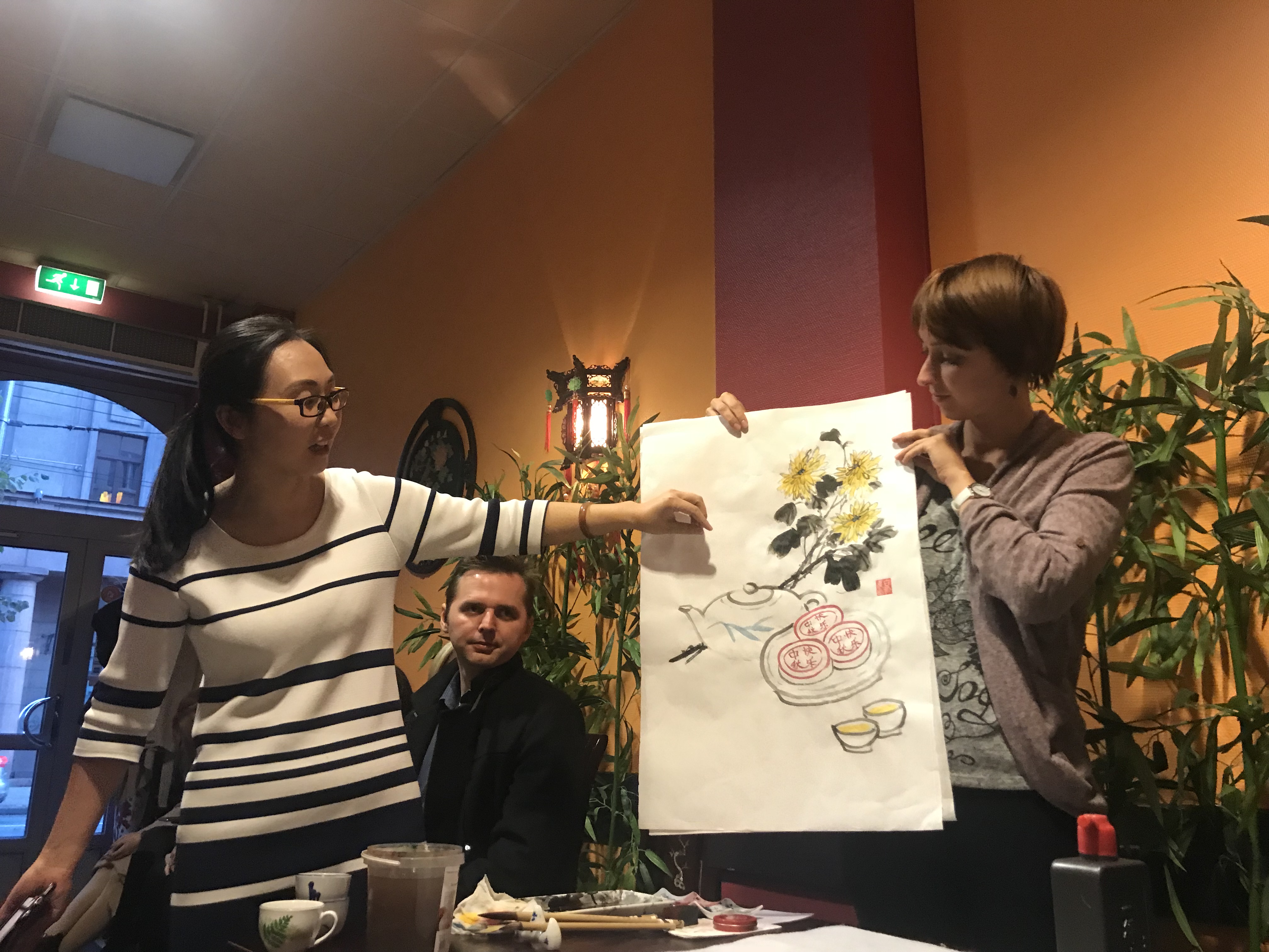 本次活动由拉脱维亚大学汉语教师王琼子和拉脱维亚留华同学会会长卡琳娜共同主持。首先,到场的各位嘉宾依次进行了自我介绍。品香茶、吃月饼,欣赏节目表演,活动丰富而有趣。拉脱维亚大学孔子学院学生、人文学院学生以及拉脱维亚留华同学会学生为大家带来了一场视听盛宴,有中秋故事、习俗的讲解,有《月亮代表我的心》的歌曲演唱,还有学生朗诵了自创的中秋诗词,更有拉大人文学院学生改编自拉脱维亚经典儿歌的欢快合唱曲——《小安娜洗澡歌》。然后,拉脱维亚大学孔子学院教师腾飞为大家讲解了中秋节的不同称谓以及中国各地不同的中秋节习俗,以及他的家乡河南省特殊的拜月、祭月方式,同时,画家白凯夏女士现场为大家作了一幅“金菊月饼图”。到场的中拉人士进行了自由交谈,相互了解中拉两国节日的不同习俗,交谈气氛温馨和睦。最后,汉语教师志愿者和中国留学生一起为大家演唱了一首《但愿人长久》,表达了对中拉人民友谊的美好祝愿。大家还一起学习了“玉兔”的折纸方法,本次中秋汉语角活动在欢快的氛围下完美落幕。