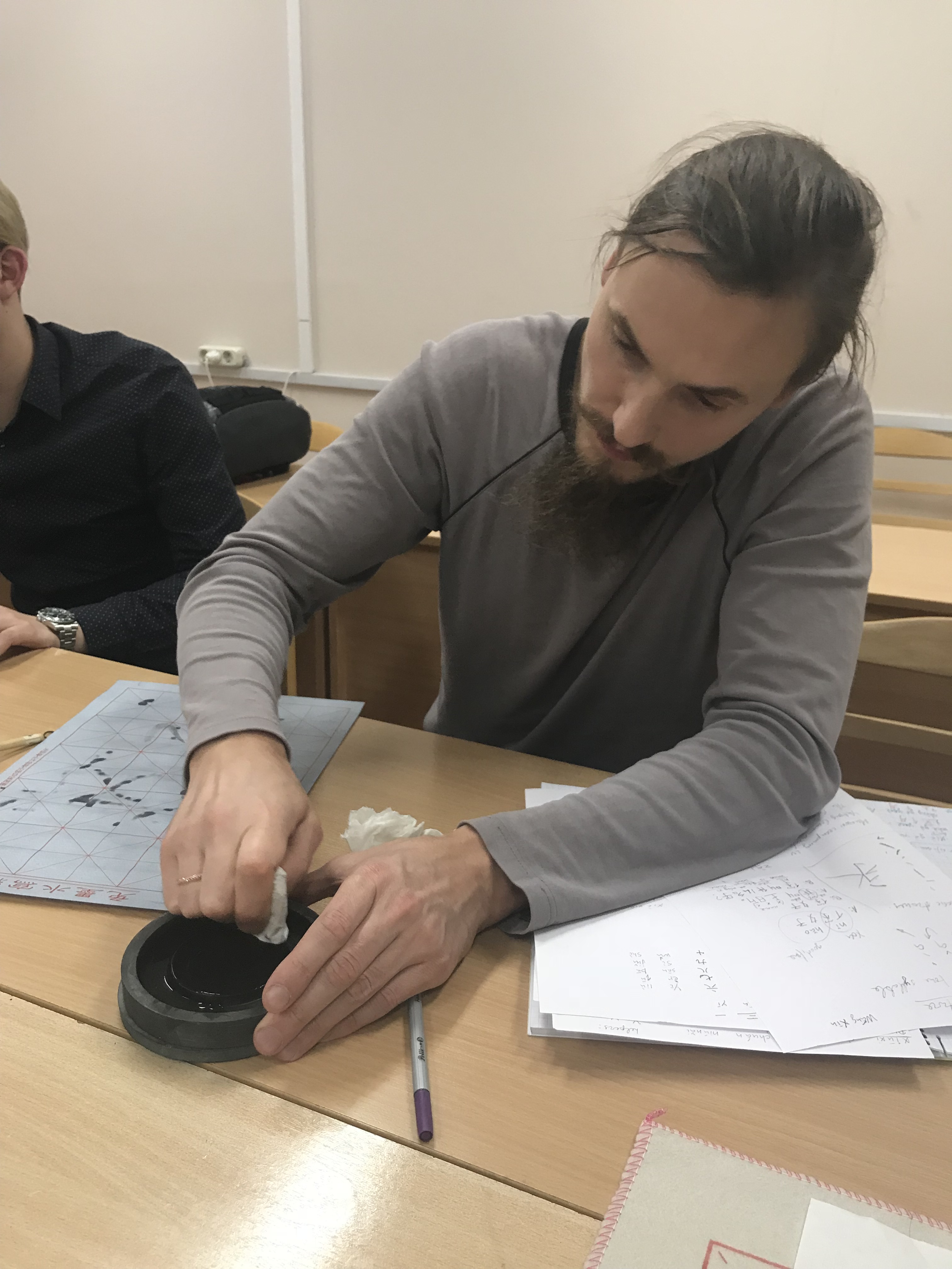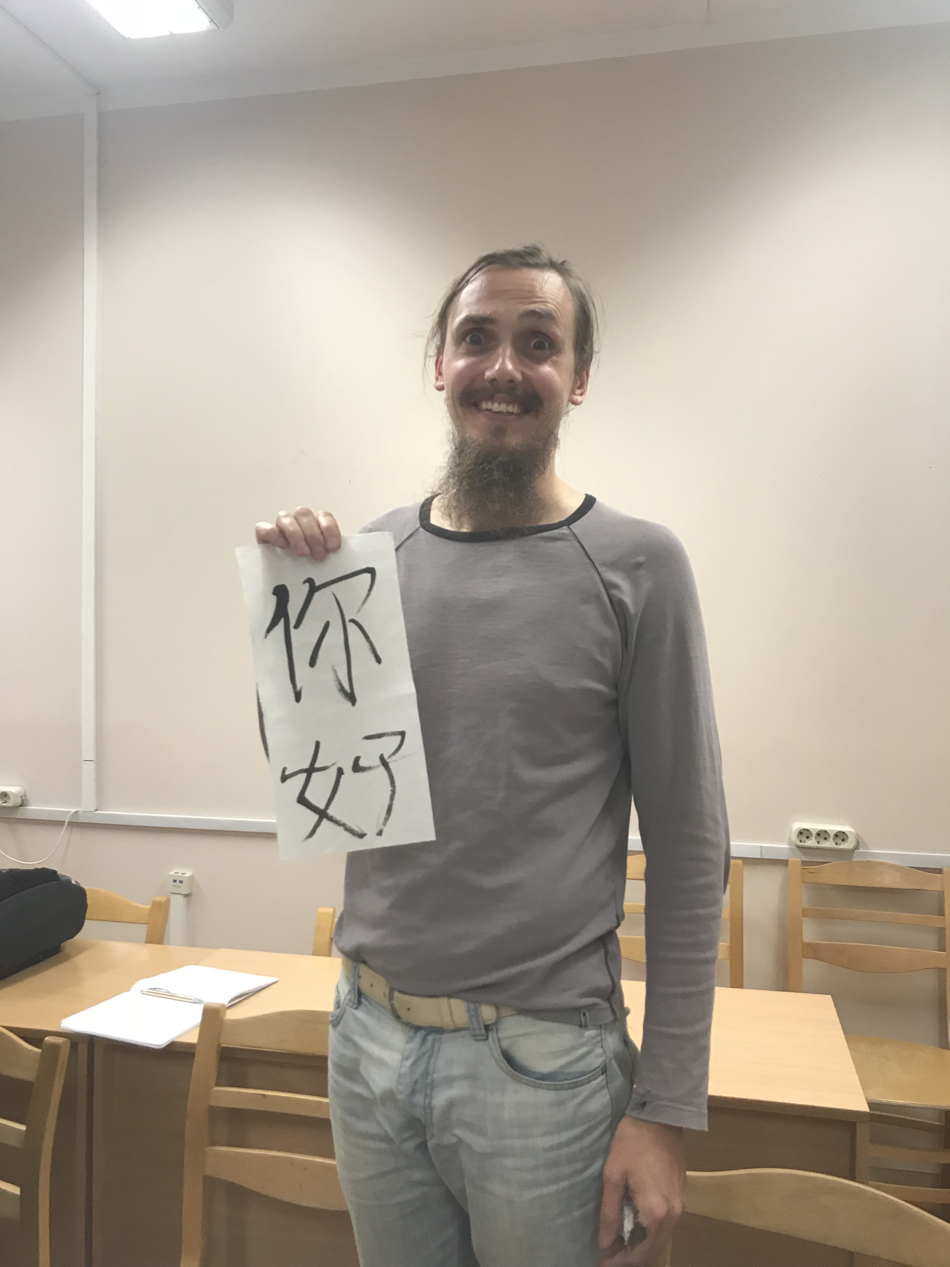 On October 19, local time, one month after the level 0 Chinese course at Transport and Telecommunication Institute started, the Chinese learners took a preliminary experience of the traditional Chinese calligraphy under the leadership of the Chinese teacher.