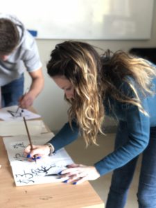 然后结合,孔子学院赠送的毛笔等实物,让同学们直观的感受文房四宝的魅力,有多名同学表示,中国的传统文化极其具有吸引力。