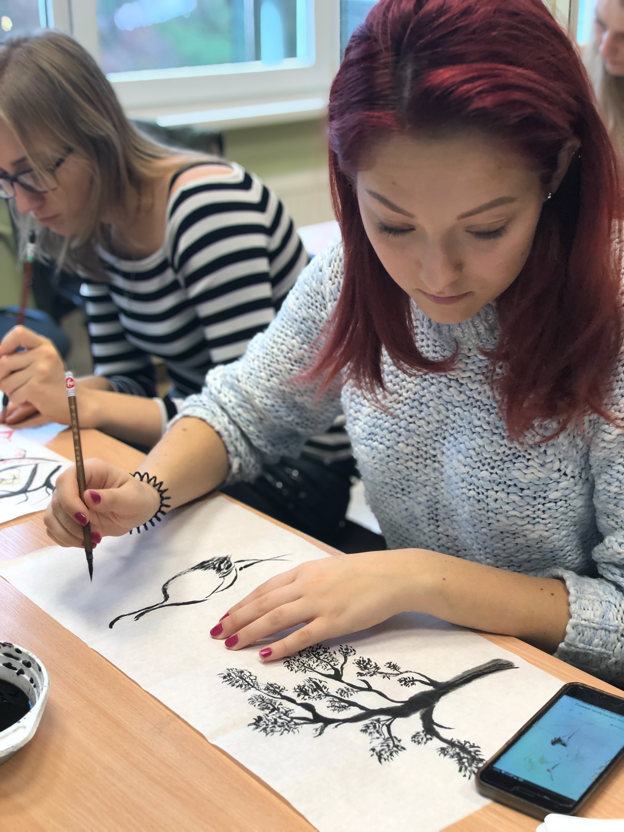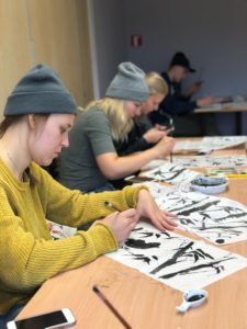 On the local time, October 22nd, in the Chinese Class at the Vidzeme University of Applied Sciences in Latvia, students experienced Chinese calligraphy and ink painting under the leadership of Chinese teachers.