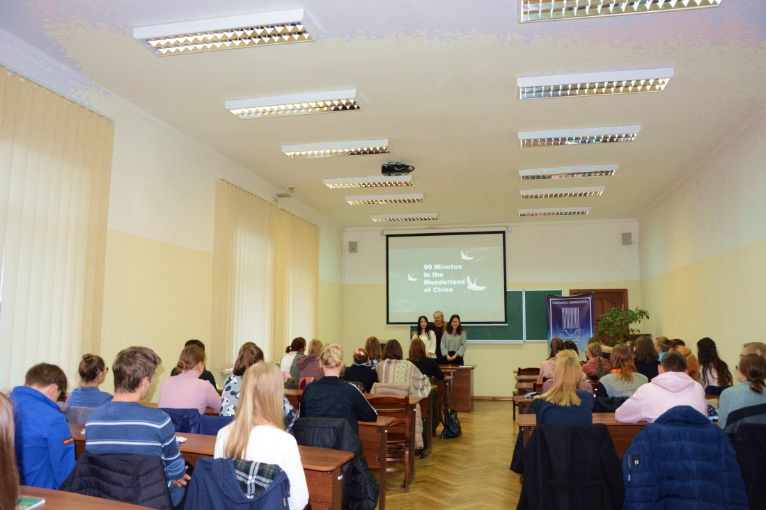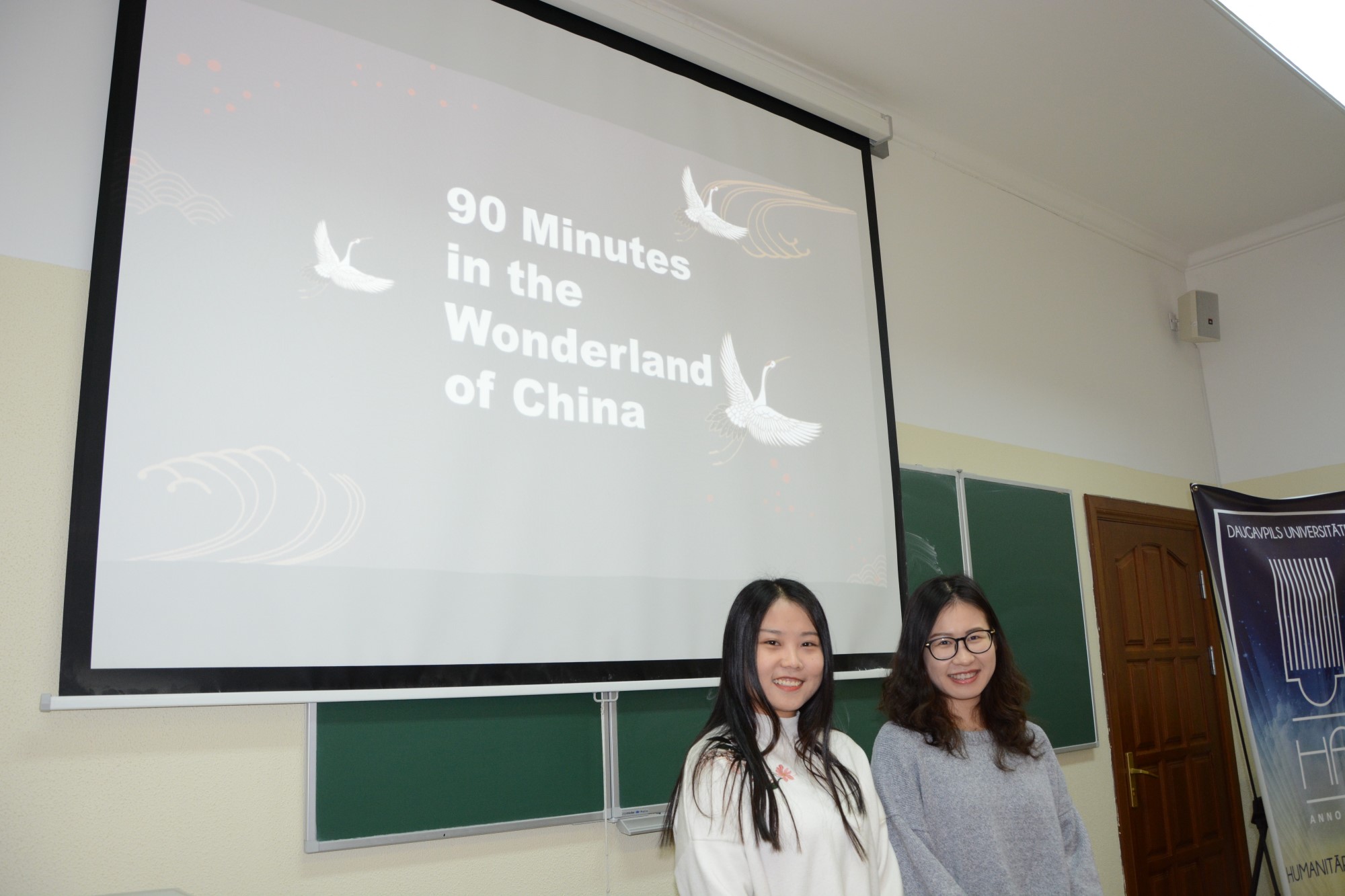 Local time at 14:00, 27th Oct, 2018, the lecture named 90 Minutes in the Wonderland of China was held at Daugavpils University. The two volunteer Chinese teachers from Confucius Classroom and about 70 school students from Daugavpils and nearby towns attended the lecture.