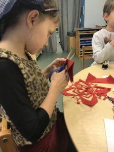 Later, the teacher took out a “Spring” paper-cut, the students were very excited, pointing to paper-cut and saying that they also wanted. The teacher then took out the prepared red paper, pencil, scissors and other tools, and work with the students to cut the “Spring”. The most surprising part is still in the behind. When the teacher took out the red envelope, the students were crazy. But it would not be so easy to get a red packet. Students must successfully say “Happy Chinese New Year, Year of the Pig” to receive the red packet. Finally, all of the students successfully said this sentence and successfully received the red packet.
