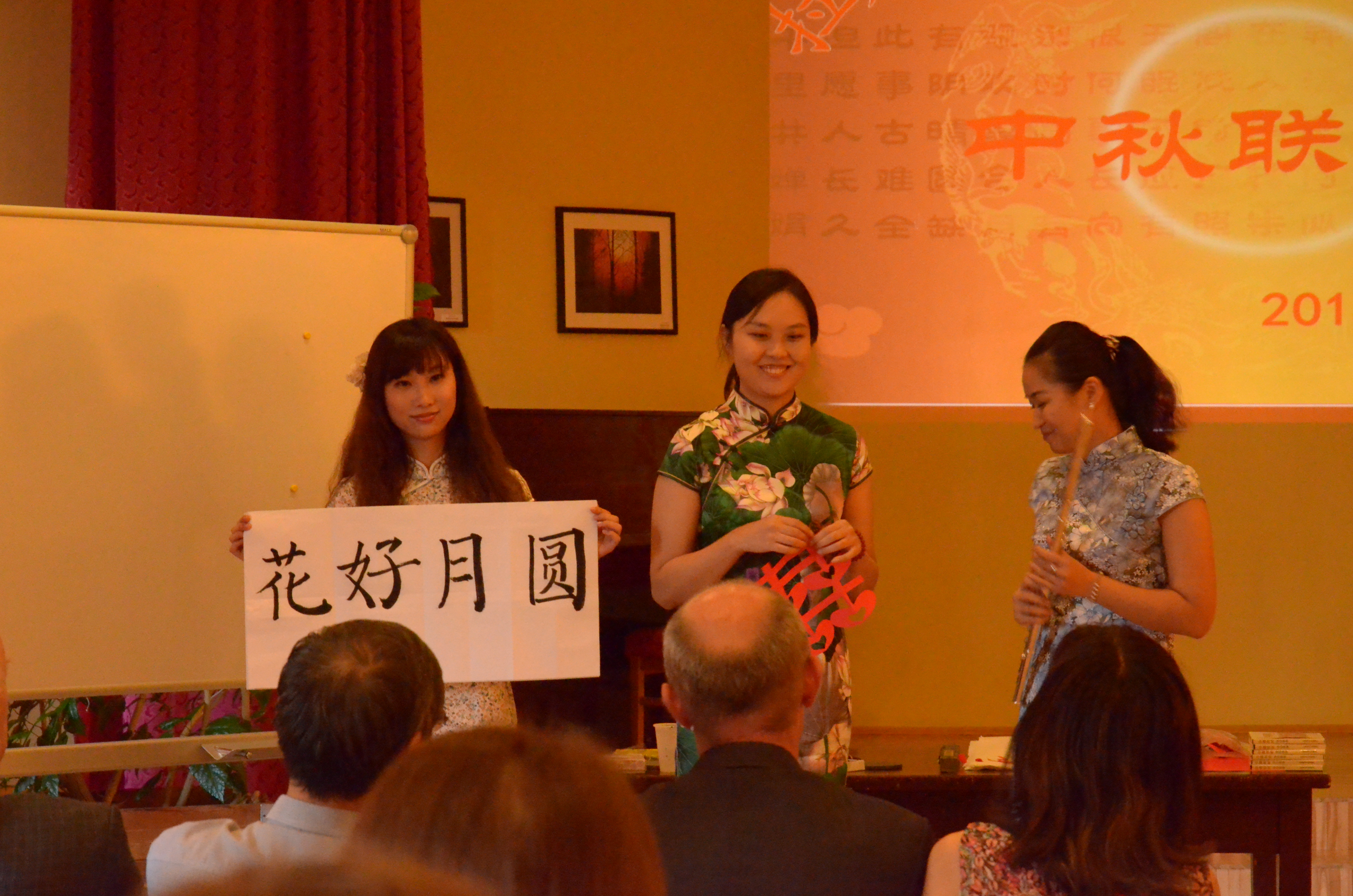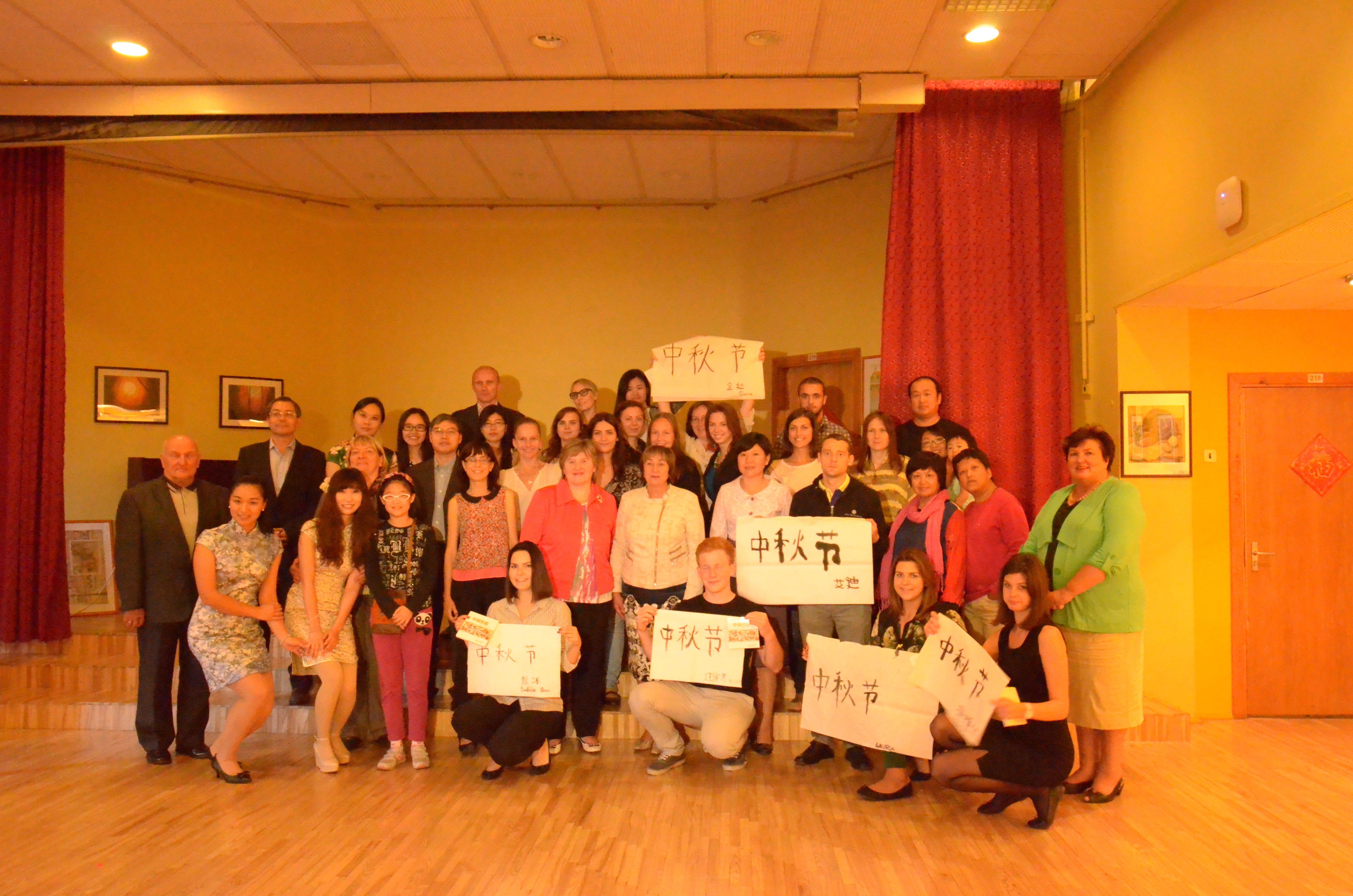 拉大孔院中方院长尚劝余教授,外方院长贝德高教授,秘书劳拉女士,以及中国驻拉大使馆领事曾伏华先生,拉大人文学院Agita教授,外事处长Aline女士,图书馆长Venta女士,里加68中学校长Larisa女士,新华社记者郭群先生等诸位嘉宾,连同拉大孔子学院汉语教师、志愿者教师、学生以及当地华人华侨、留学生等50余人参加了此次中秋联欢活动,共度中秋佳节。