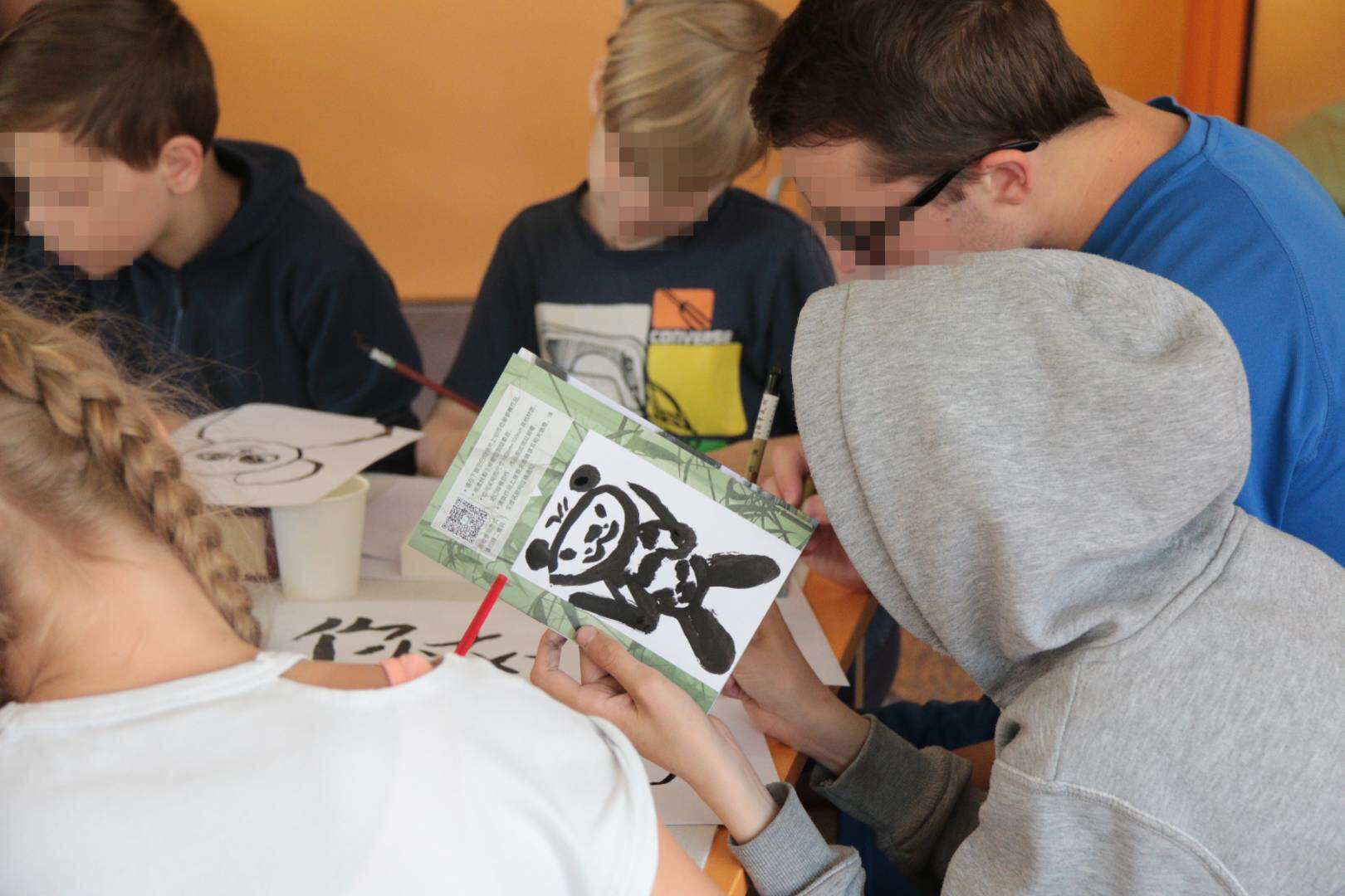 The activity was hosted by the Chinese Embassy in Latvia and co-organized by the Confucius Institute at the University of Latvia. Ms. Sun Xiaoxia, head of the women’s team of the Chinese embassy, ​​and representatives of the embassy, ​​volunteer Chinese teachers from the Confucius Institute-Zou Yaping, Liang Juan, and relevant leaders of the Riga Children’s Hospital participated in the activity. At the beginning of the activity, the children watched the “Panda Fun Instant” video, and the laughter continued. Then, Ms. Sun Xiaoxia gave a speech. In the teaching session, first, Mr.Zou introduced China on the intimate interaction of “Children teach Latvia, teacher  teach Chinese”, and the children learned “China, hello, goodbye, Thank you” these simple words in Chinese in a relax and pleasant atmosphere. Finally, the children experienced the Chinese character “Hello” written by the traditional Chinese calligraphy painting tool. Although it was the first time to use the writing brush, many children can use it very good. In the painting panda session, the children first understand the Chinese saying of the panda and the panda’s favorite food-bamboo. Then, under the demonstration of Chinese teacher Mr.Liang, they started their own panda.