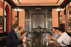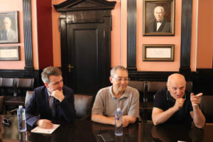 6月25日下午,广东省外事办公室副主任仓峰一行6人访问拉脱维亚大学孔子学院并进行座谈。拉脱维亚大学孔子学院拉方院长贝德高教授、中方院长尚劝余教授、汉语教师曾庆君和林婕在拉脱维亚大学议会厅接待了广东省外事办代表团。出席本次座谈的还有拉脱维亚外交部官员安德里斯(Andres)。