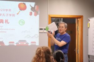 In the first part of the ceremony, Prof. Shang Quanyu introduced to the students the development of LUCI and the major events planned by LUCI, including the course arrangement, Chinese Bridge Competition, Chinese Proficiency Test (HSK), summer camps, scholarships, and other events about to be held, and they invited all the students to participate in the upcoming activities. Prof. Shang Quanyu also expressed his enthusiasm for helping every student who loves Chinese and Chinese culture to complete their dream. He expressed his earnest expectations to the students.