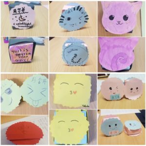 孔院少儿班的师生用画画、折纸的方式共同体验中国传统文化与才艺的碰撞。汉语教师焦文静首先播放了介绍中秋节的俄语短片,让学生们了解中秋节的由来、中秋节习俗、中秋节的含义等,接着教师带领学生学习“月亮、月饼、中秋节快乐”等词汇,将汉语教学与传统文化相结合,让学生既学习了新的语言知识,又感受到中国人明月寄相思的中秋情。最后,同学们不仅合作制作了“中秋节快乐”的祝福标语和手工月饼收纳盒,还共同品尝了来自中国的、不同口味的月饼。