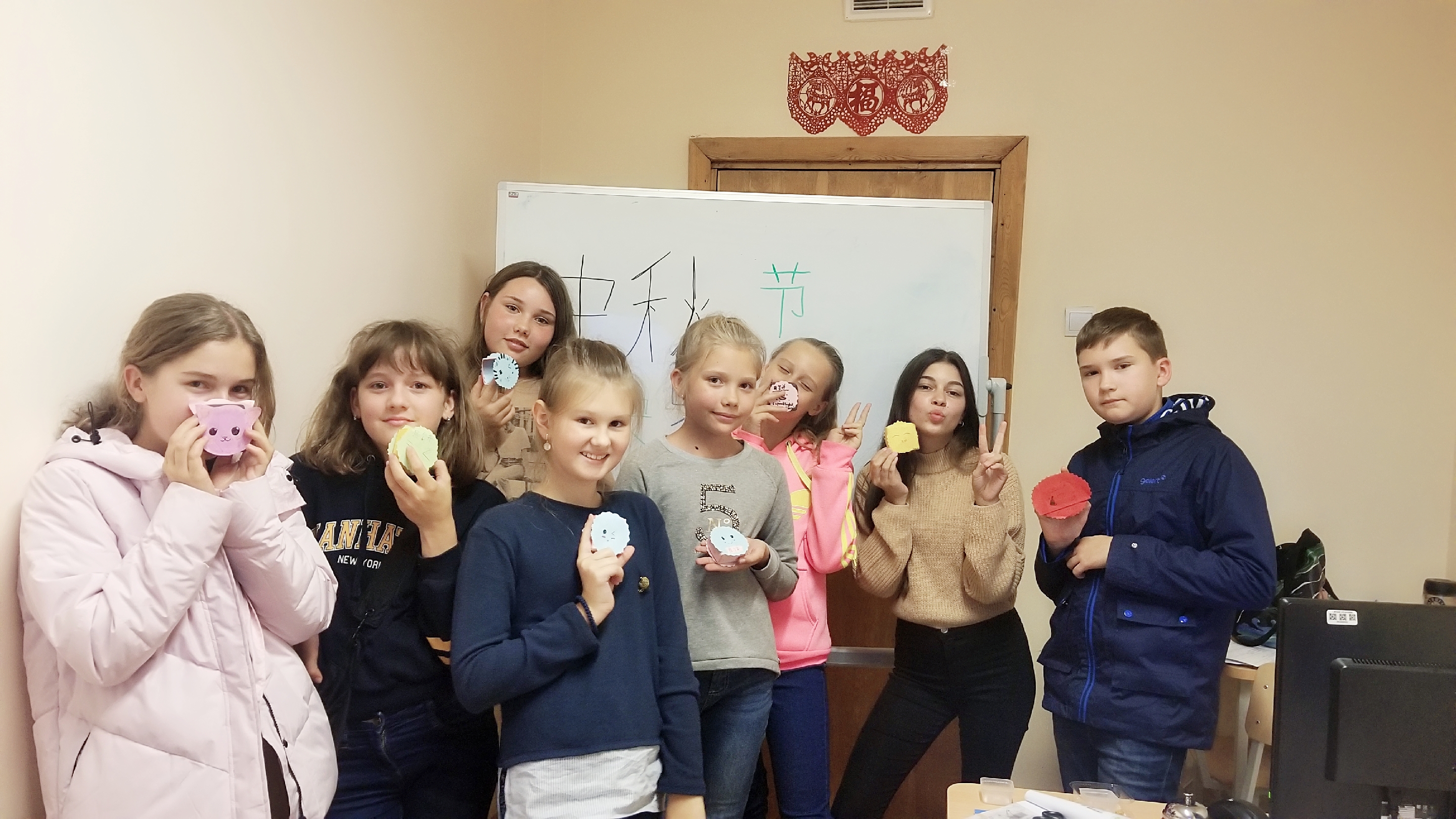 Chinese teacher Jiao Wenjing of Children’s group played a Russian short film introducing the Mid-Autumn Festival, letting students understand the origin of the Mid-Autumn Festival, the Mid-Autumn Festival customs, the meaning of the Mid-Autumn Festival, etc. Then the teacher led the students to learn some new words like “moon, moon cake, Mid-Autumn Festival” The vocabulary combines Chinese teaching with traditional culture, allowing students to learn new linguistic knowledge and feel the Mid-Autumn Festival of Chinese people who misses their hometown for sustenance, misses their loved ones, prays for a good harvest and happiness. Finally, the students not only co-produced the “Happy Mid-Autumn Festival” greeting slogan and the handmade moon cake storage box but also tasted the moon cakes from China with different tastes.