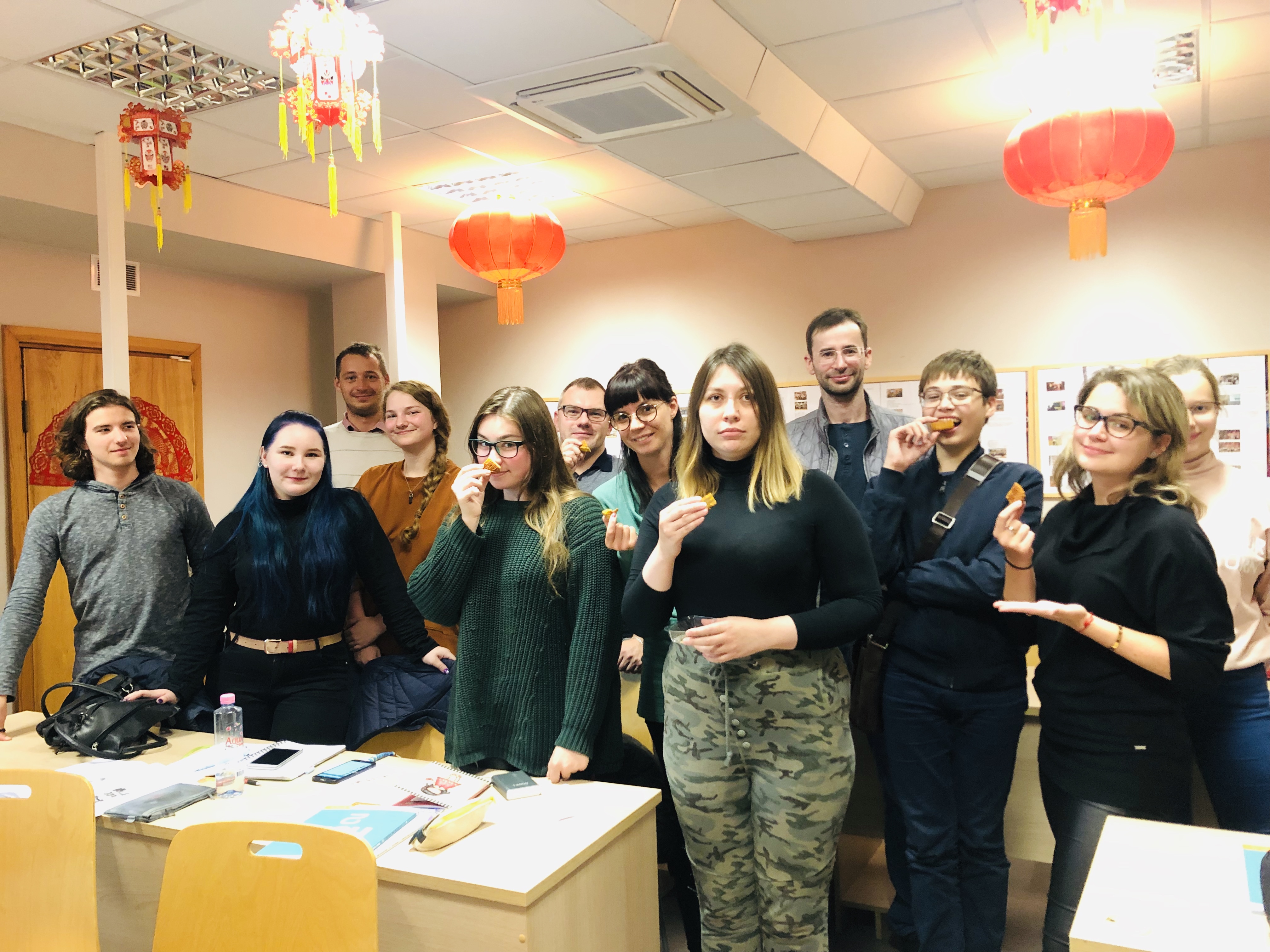 In the intermediate group and advanced group of adult, the Chinese teacher Che Junchi introduced the origin, development, purpose and custom of the Mid-autumn Festival. And the teacher introduced two interesting myth as well which is related to the Chinese traditional festival——Hou Yi Shoots Down the Suns, Chang E flys to the moon. At the end, all students enjoyed the special dessert——moon cake.