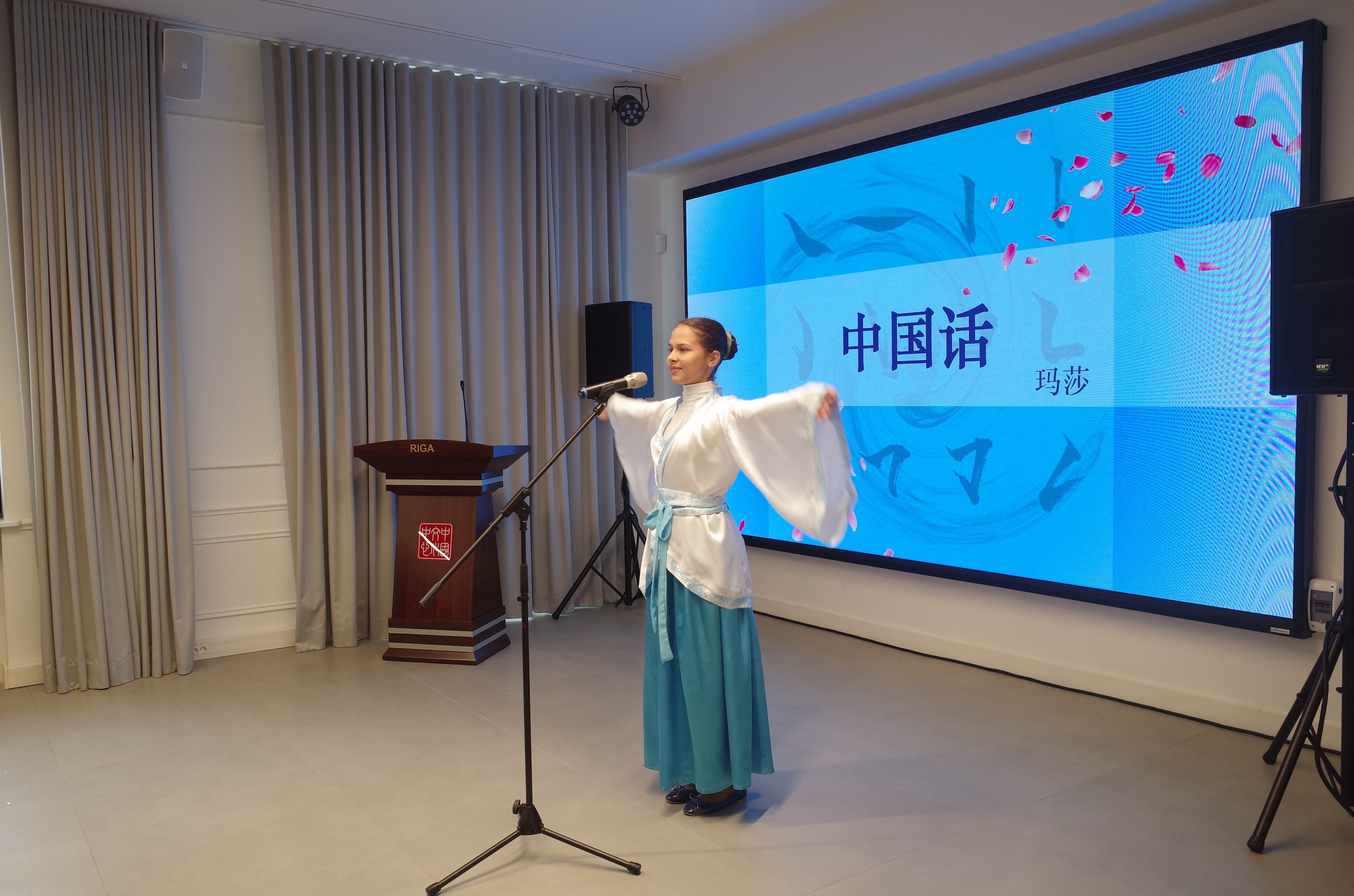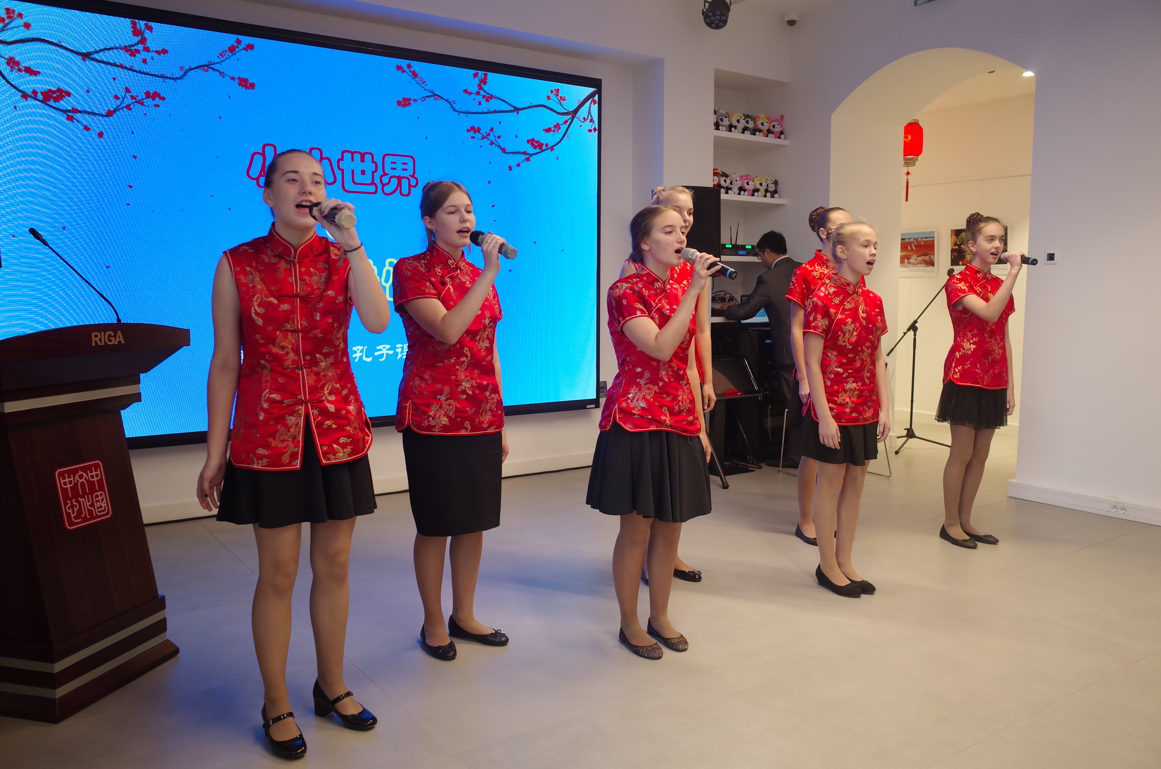 在主持人开场后,表演者轮番上台,为大家带来了一场美妙的视听盛宴。“全世界都在说中国话”,来自叶尔加瓦的玛莎用一首《中国话》向充满魅力的中文表白。贝娜茜演唱的《神话》精彩绝伦。格蕾用一曲中国风浓厚的《青花瓷》演绎了烟雨江南的缠绵悱恻。里加34中学孔子课堂的学生们带来的《小小世界》和《爱与关怀》,把大家带回了孩童时纯真的世界。现场气氛激烈,台上台下热情互动,掌声不断。活动结束后,到场嘉宾与演出人员共同品尝了中国菜。