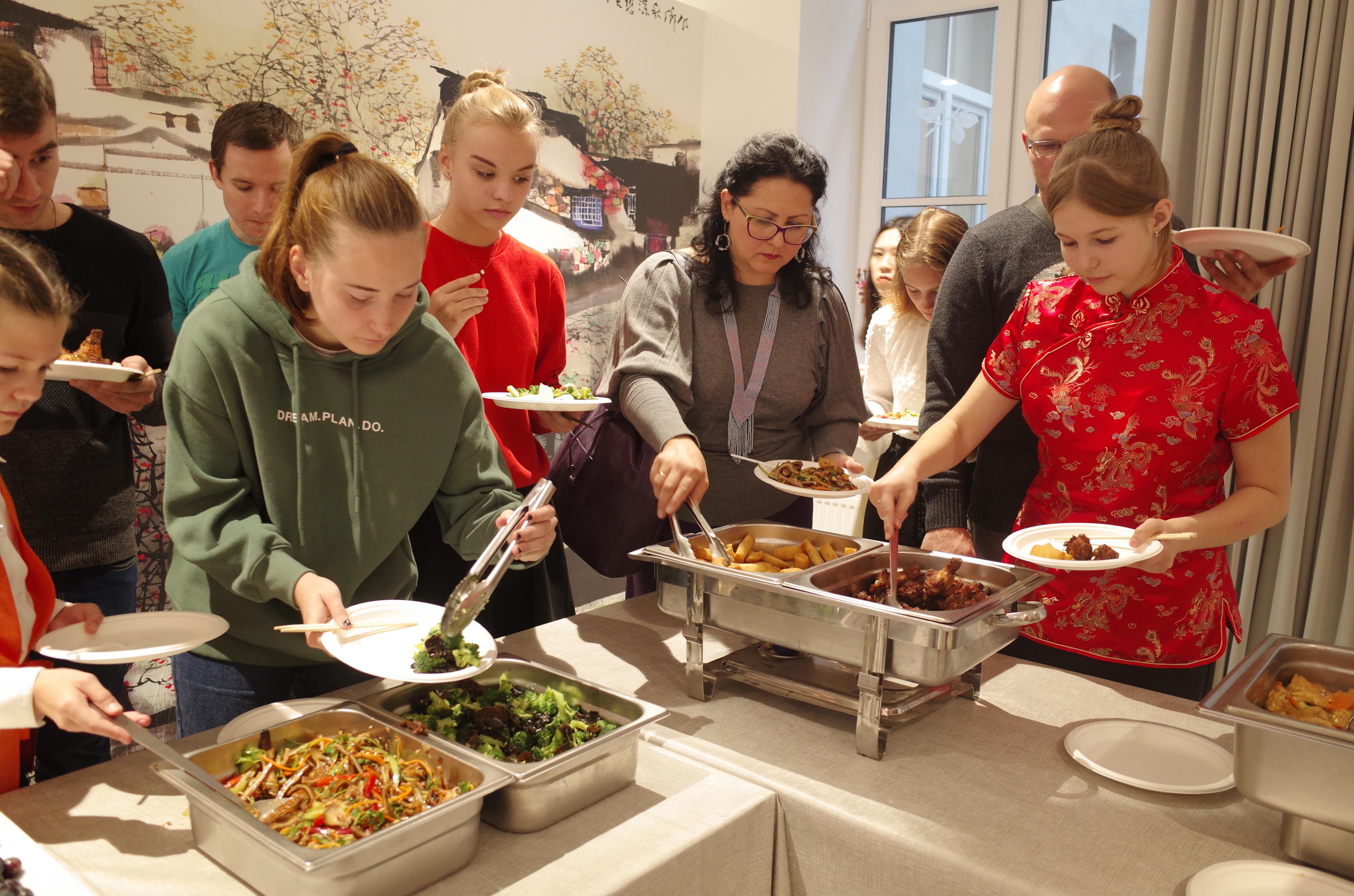 After the opening of the host, the performers took turns on the stage, bring us a wonderful audio-visual feast. “The whole world is talking about Chinese.” Martha from Jelgava used a Chinese saying to express her glamour to Chinese. The “Myth” that Benassi sings was wonderful. Grey used a Chinese style, “Blue and White Porcelain” to interpret the lingering of the south of the rain. The “Little World” and “Love and Care” brought by the students of the Confucius Classroom at Riga 34 Middle School brought everyone back to the pure world of childhood. The atmosphere was fierce, and the stage was enthusiastic and interactive, and there was a lot of applause. After the event, the guests and the performers tasted Chinese food together.