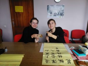 For the second year of university students, this is the second time to participate in the celebration of the Mid-Autumn Festival. Therefore, Ms.Wang introduced Chinese calligraphy elements. Everyone writes calligraphy and tastes delicious moon cakes to appreciate the beauty of Chinese traditional culture. The beauty of Chinese calligraphy and the sweetness of moon cakes are in the hearts of the students, ” One student said happily: “The annual Mid-Autumn Festival makes me feel that learning Chinese is so happy, just like the taste of this sweet moon cake.”