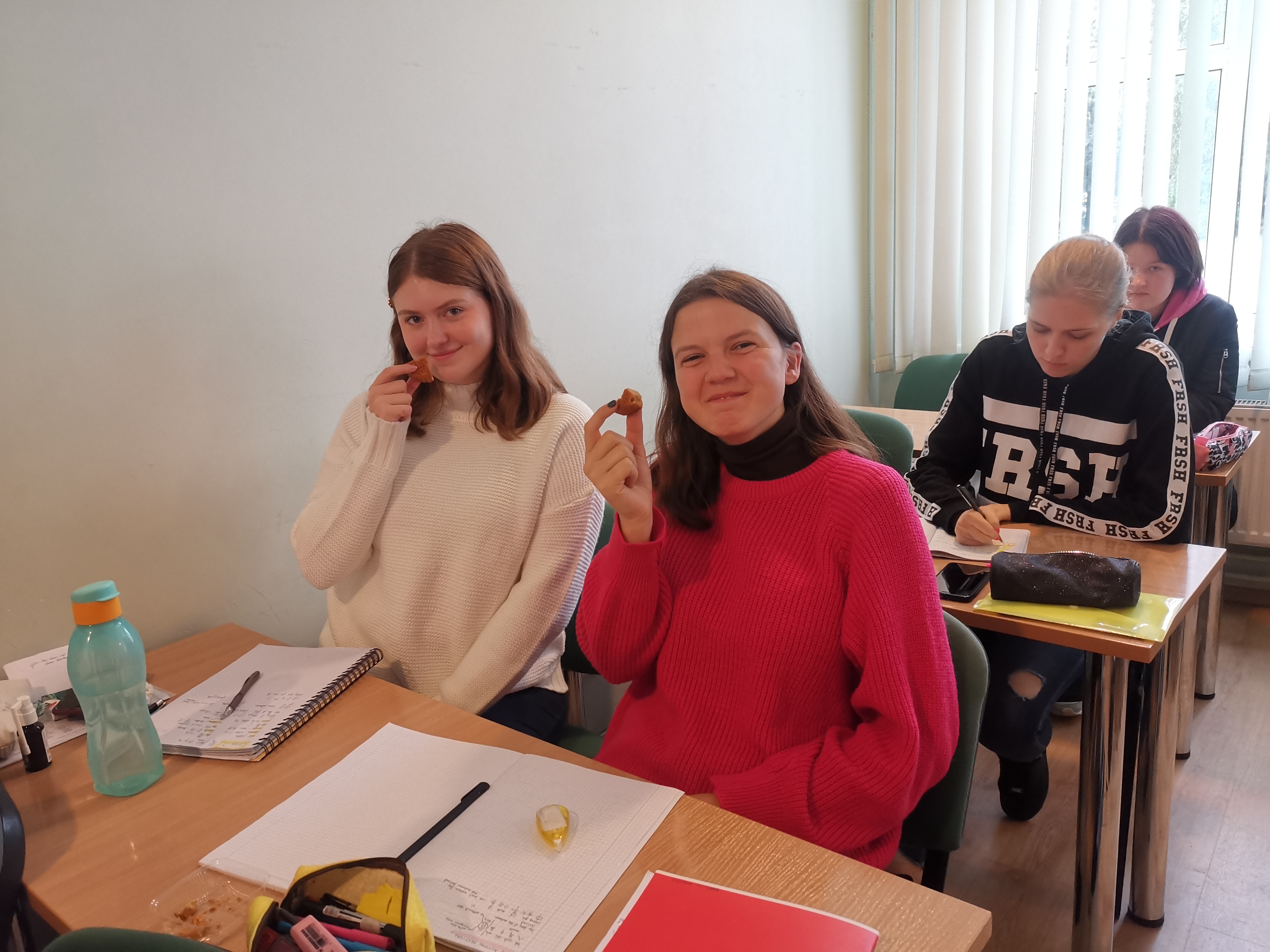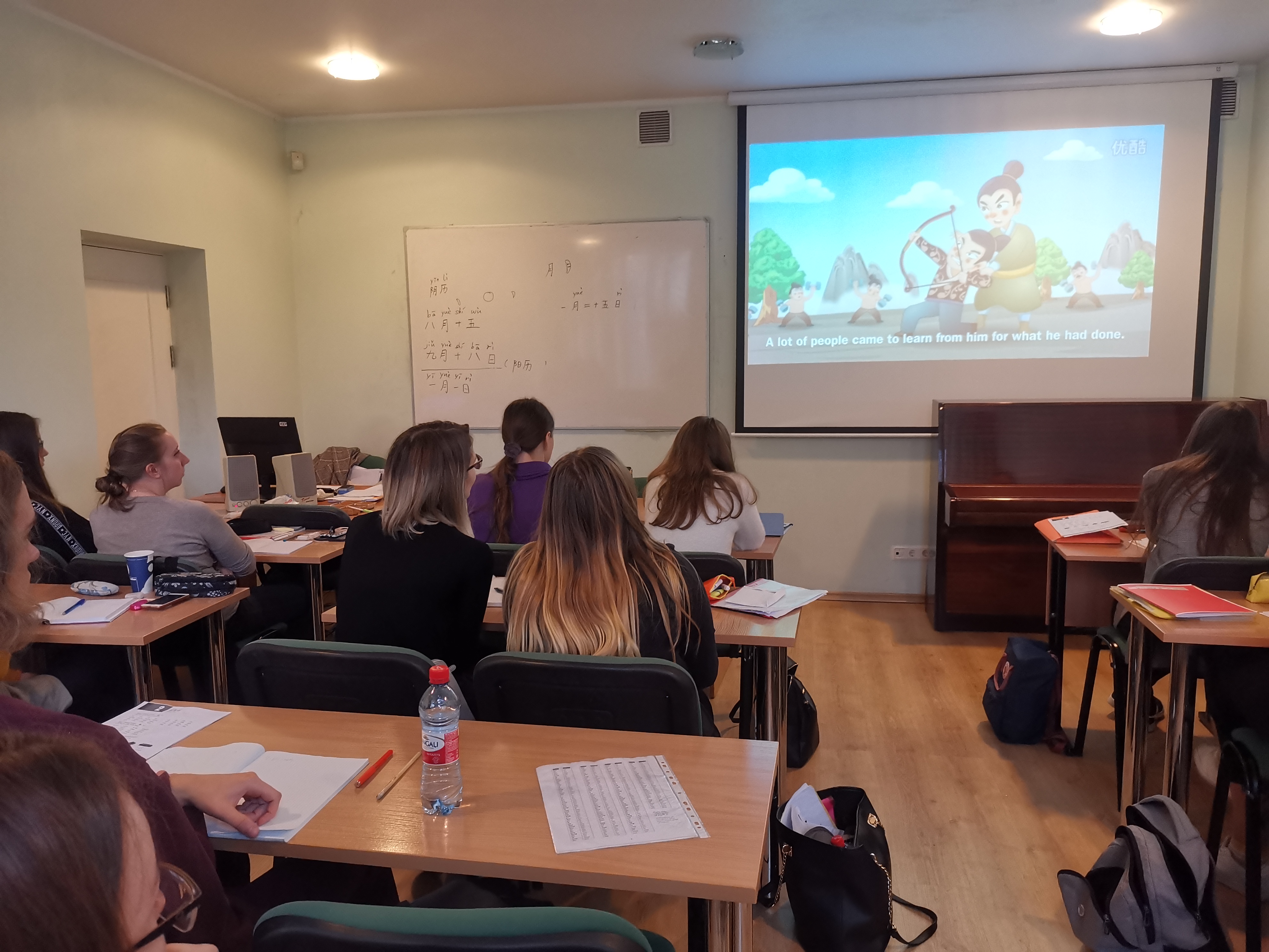 对于刚开始学习汉语的大学一年级学生来说,这是她们第一次接触“中秋”这个节日。首先,结合介绍中秋的视频,王老师声情并茂地讲解了中秋节的来历、中秋节吃月饼赏月的习俗,引起了学生们的浓厚兴趣。随后,大家一起吃着甜甜的月饼,听着美妙的歌曲,其乐融融。另外,中秋节也是一个丰收团圆的节日,王老师还让学生们把拉脱维亚的传统节日和中秋节进行了有趣的对比,整个活动洋溢着欢声笑语。