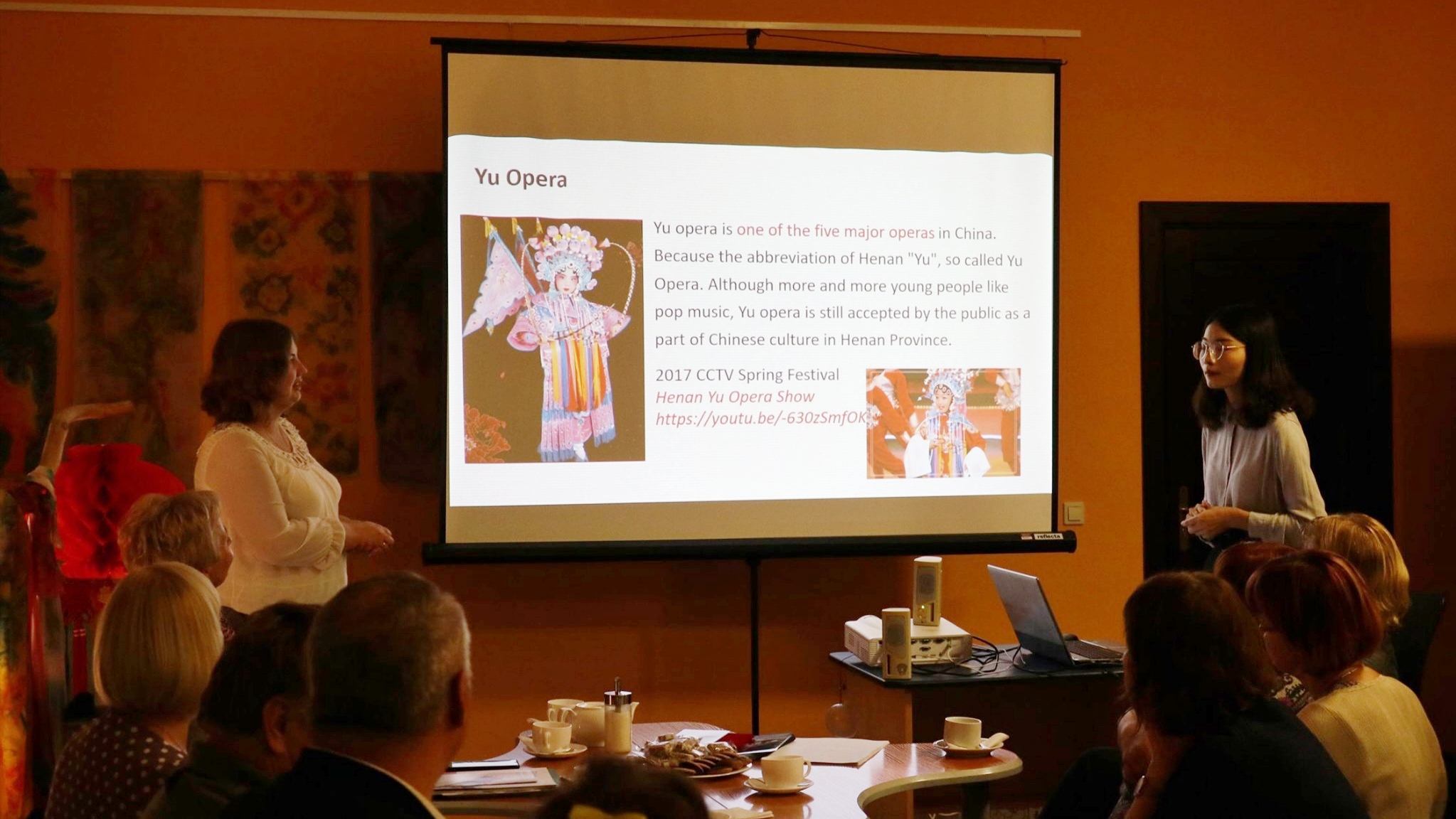 Finally, Wu Zhezhe, the volunteer Chinese teacher at Jekabpils State Gymnasium, began to make people know more about China’s education system from her own study and work experience, and then introduced the characteristics of Henan Province from the six aspects of geography, cuisine, famous tea, dialect, martial arts and Yu opera. In addition, through the matching interaction activities of pictures and Chinese characters, it effectively enhances the interest of Chinese character sage and learning, and helps the listeners overcome the fear of first exposure to Chinese. What’s more, the study of the Chinese character “qiu” once again stimulated everyone’s interest in Chinese.