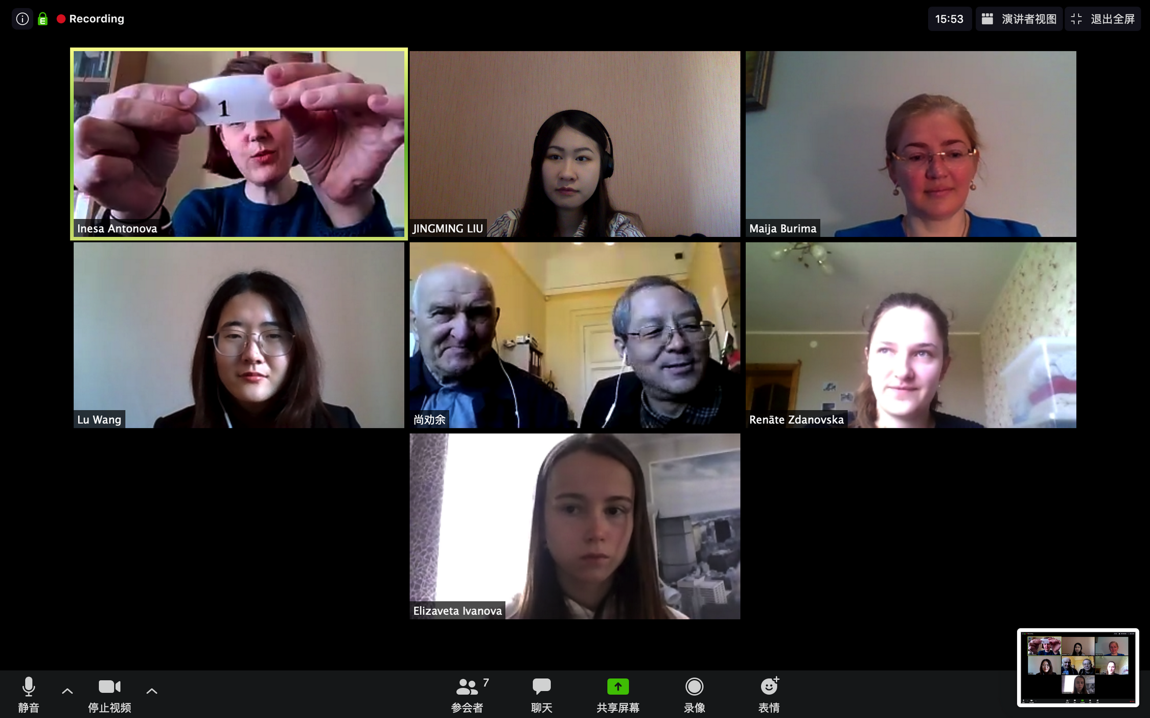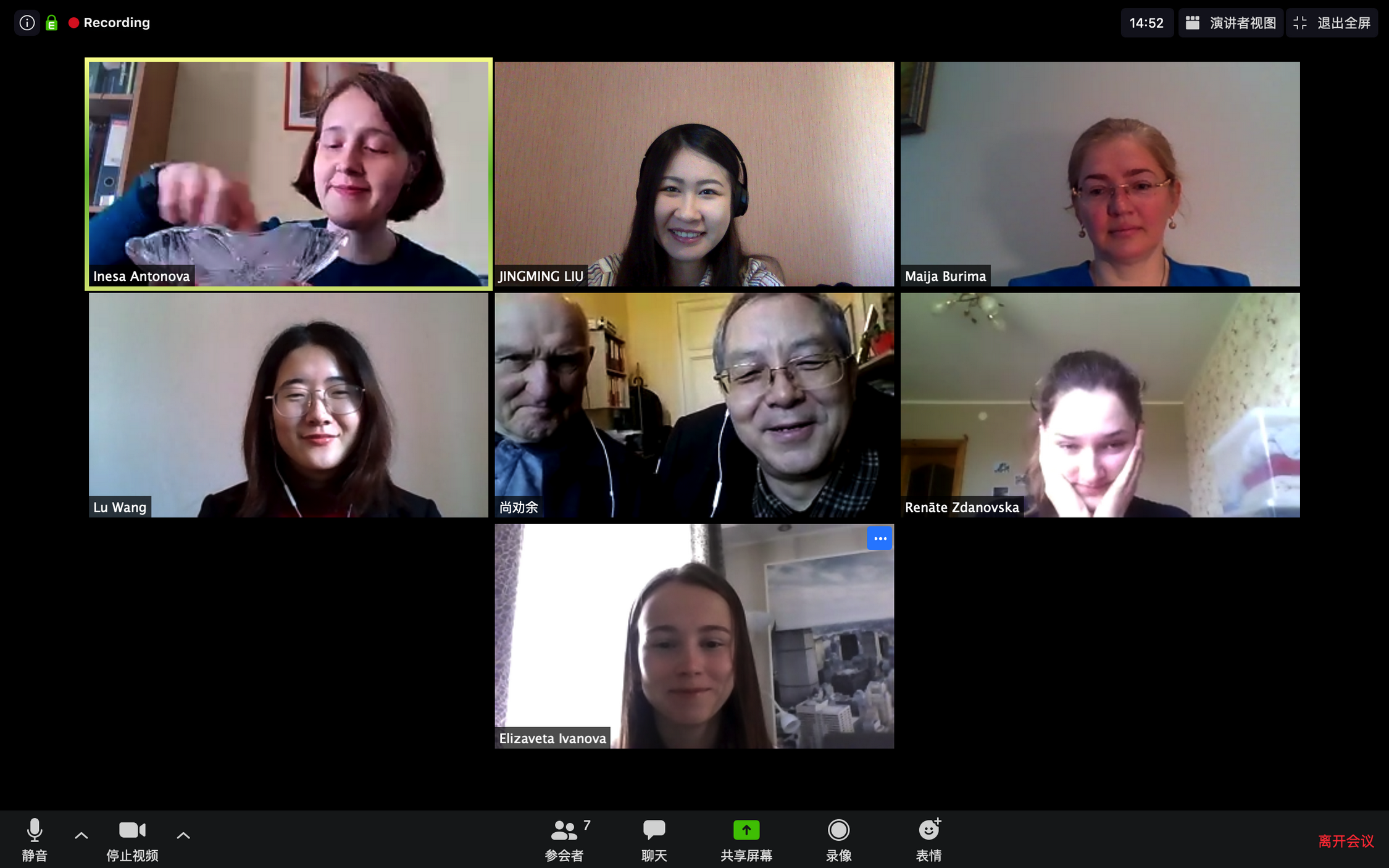 At 9: 00 a.m. local time on May 27, the students of the first Chinese elective course in Confucius classroom at Daugavpils University successfully passed the graduation examination. The examination was conducted in the form of an online test using Zoom software, hosted by Inesa Antonova, the teaching secretary of the Foreign languages Department. Ms. Maijia Burima, the vice rector of Daugavpils University, Professor Shang Quanyu and Professor Peteris Pildegovics, the two directors of the Confucius Institute at University of Latvia attended the exam. As important graders, two directors scored the students’ performance together with the two Chinese teachers.