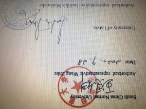 September 28, 2020 is a lucky day for Confucius Institute at University of Latvia. It coincides with the birthday of Confucius, the Confucius Institute Day and the anniversary of University of Latvia. The new agreement for Confucius Institute at University of Latvia is officially signed by Indriķis Muižnieks, Rector of University of Latvia, and Wang Enke, President of South China Normal University.