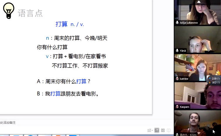 After several coordinations between Teacher Xie Liting and Karine, the head of the Confucius Classroom at the school, it was finally decided that the Chinese courses of the intermediate and advanced classes would be conducted on the Tencent video conference platform. Students only need to log in to VooV Meeting (Tencent Meeting International Edition) and enter the meeting ID sent by the teacher to attend the class.