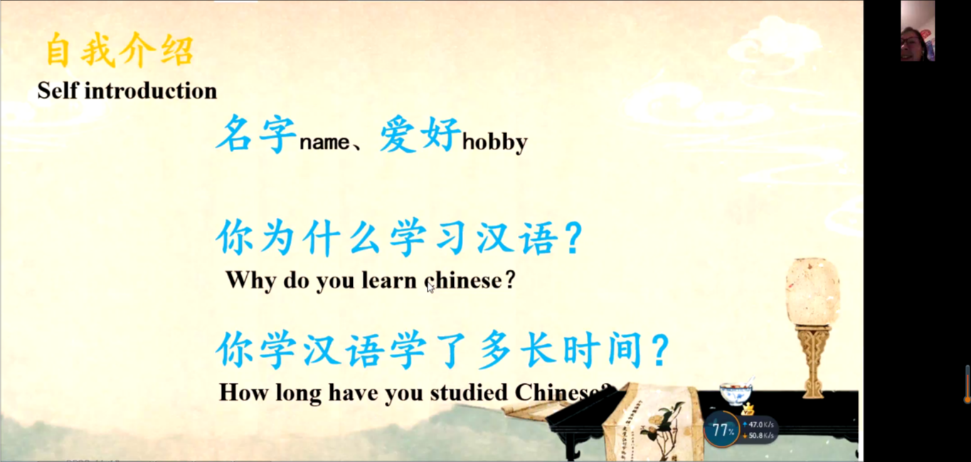 In the next self-introduction session, when the teacher asked “Why are you learning Chinese”, the students expressed that because they are very interested in Chinese culture, they hope to learn more about China and Chinese culture, and improve their Chinese level through Chinese classes. Later, Teacher Xie Liting played the “China International Promotional Video” and asked the students to talk about how China is in their impressions. Among them, Katya, from the advanced class, believes that China has a long history, a splendid culture, a developed economy and a wealth of people’s lives.She will definitely visit China if she has the opportunity.