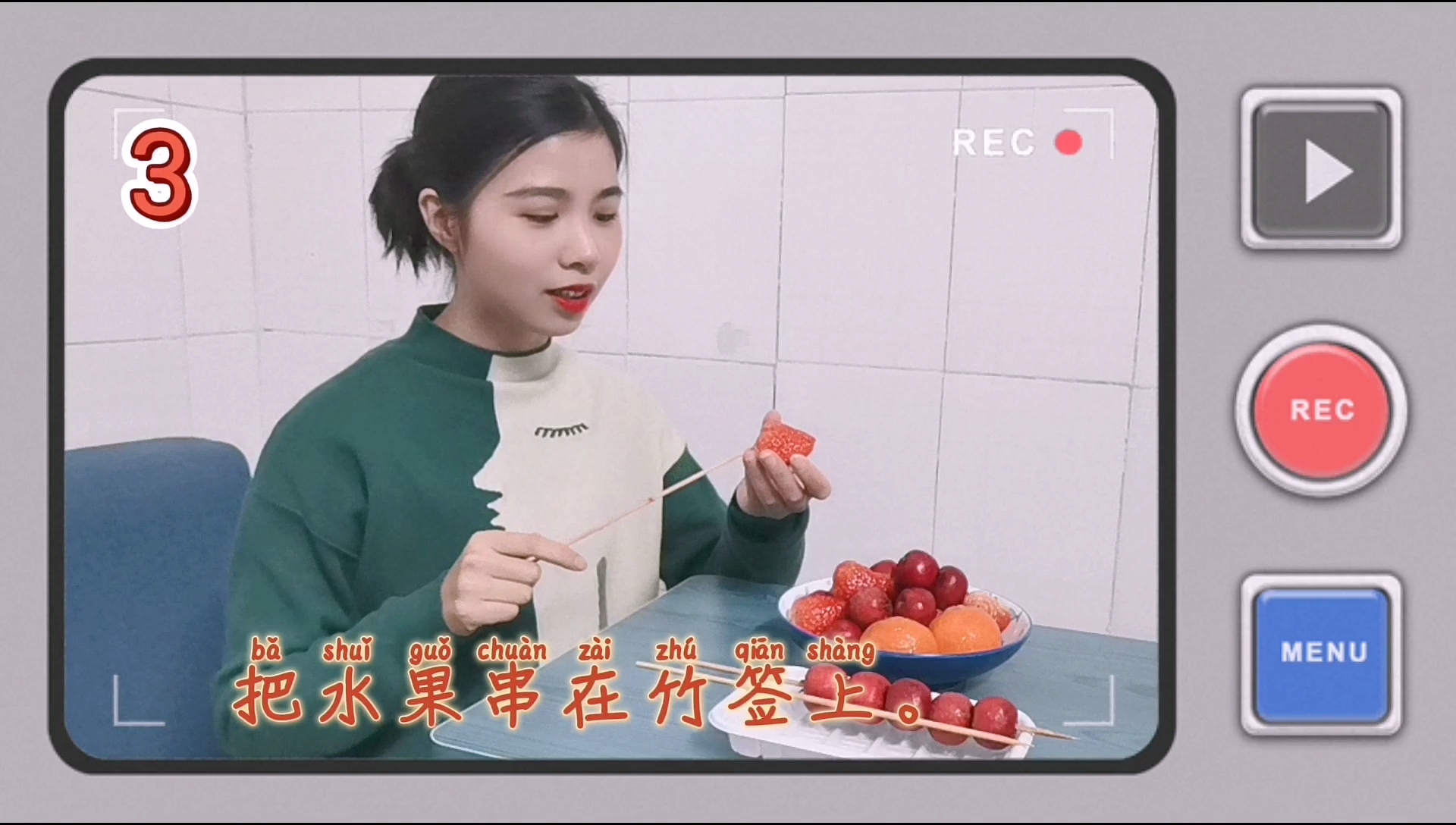 此外,谢丽婷老师还向同学们介绍了中国传统的小吃——冰糖葫芦。为了带给同学们更好的体验,谢丽婷老师拍摄了视频,与大家分享了制作冰糖葫芦的方法,并展示了自己做的冰糖葫芦,这让大家觉得既新鲜又惊喜。最后,谢丽婷老师给同学们布置了一份特别的作业——让同学们自己尝试做冰糖葫芦。课程结束后,一些同学在家亲自体验了做冰糖葫芦。其中,来自中级班的卡缇娜展示了她和家人一起完成的冰糖葫芦,并表示“冰糖葫芦又脆又好吃,很快就被吃完了,她和家人都非常喜欢,以后还会多尝试制作中国美食”。