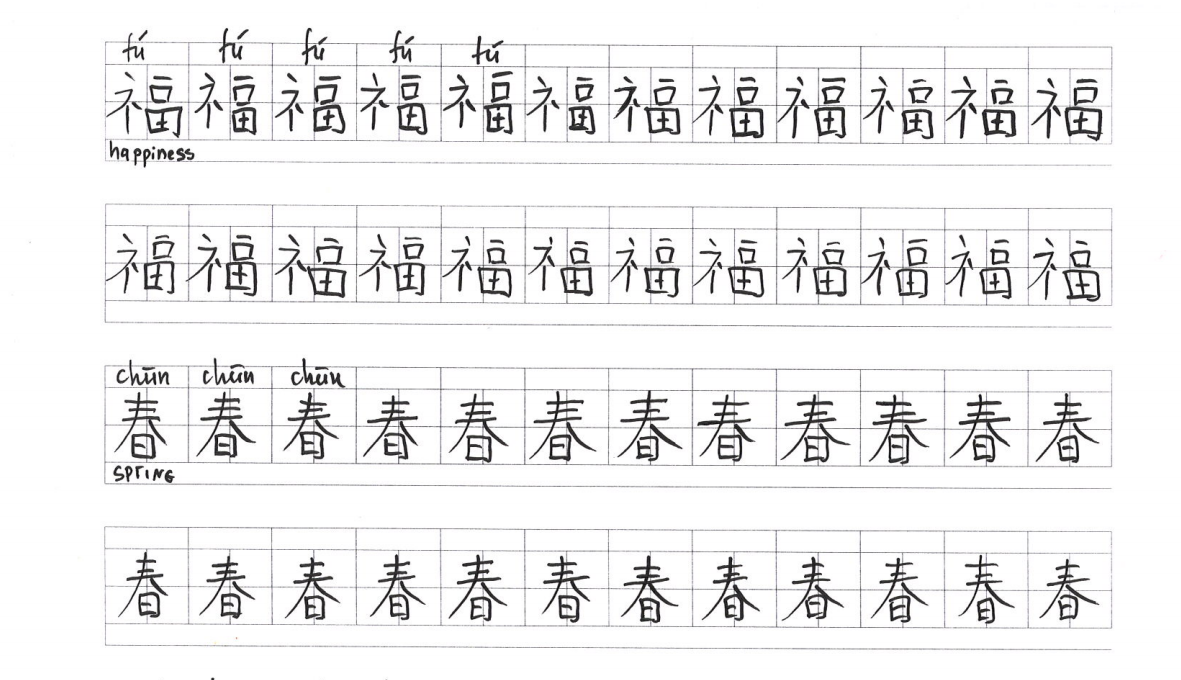 在课堂上,汉语教师谢丽婷通过春节文化宣传片给学生们介绍了春节的起源、以及“贴对联”、“发红包”、“吃年夜饭”等习俗,让学生体味到春节背后所蕴含的悠久历史和灿烂文化。接下来的一系列文化体验活动则让同学们感受到了浓浓的“年味”。在谢丽婷老师的带领下,同学们一起书写了寓意着美好祝愿和希望的“福”字、“春”字;一起制作了象征着喜庆、团圆的灯笼;并且一起演唱了欢乐的新年歌曲,好不热闹!
