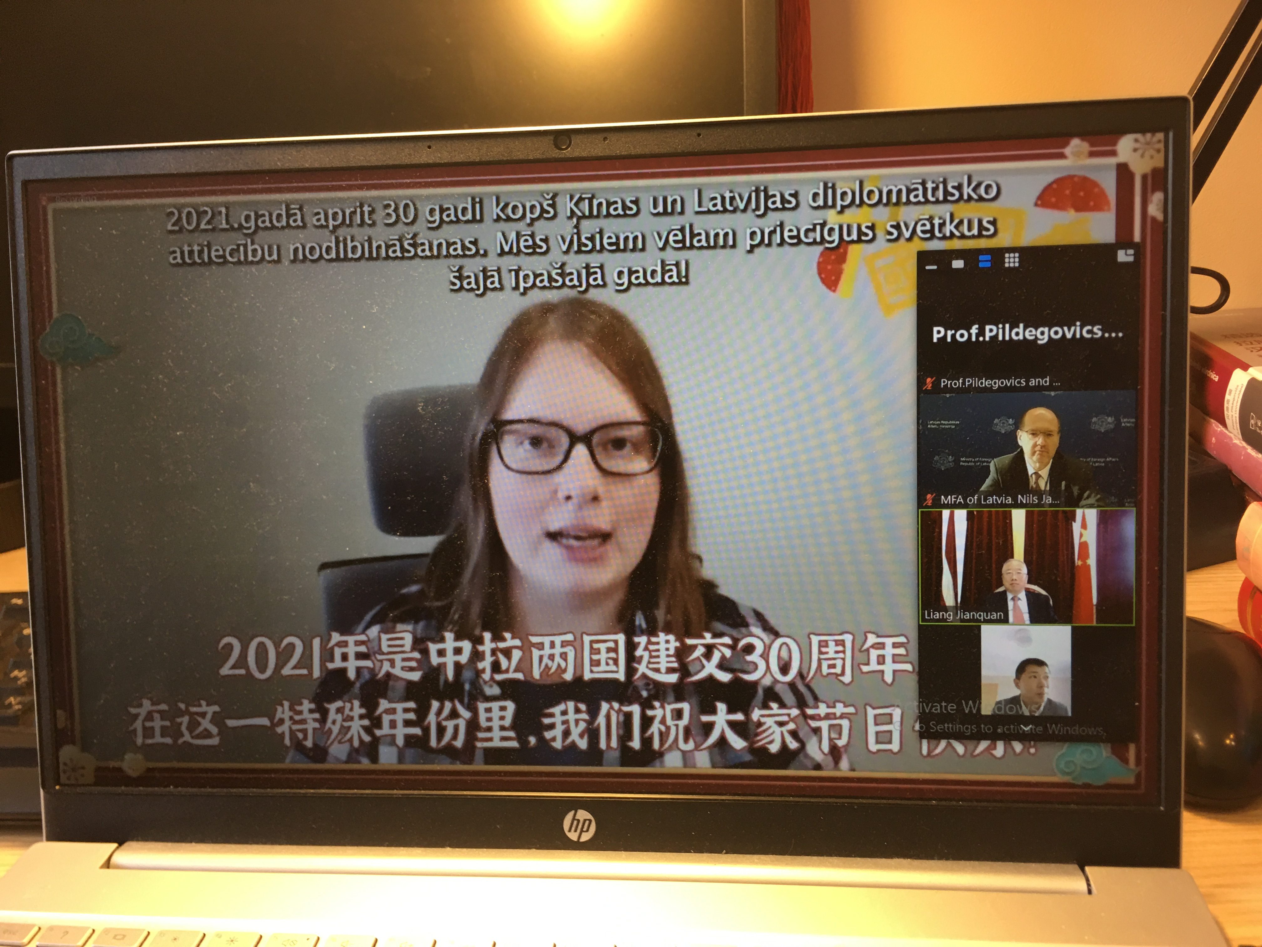 On September 22, 2021, Embassy of People’s Republic of China in the Republic of Latvia organized an online celebration of the 72nd Anniversary of the Founding of P R China and the 30th Anniversary of China-Latvia Diplomatic Relations, among others were two directors from Confucius Institute at University of Latvia who were invited to participate the activity.
