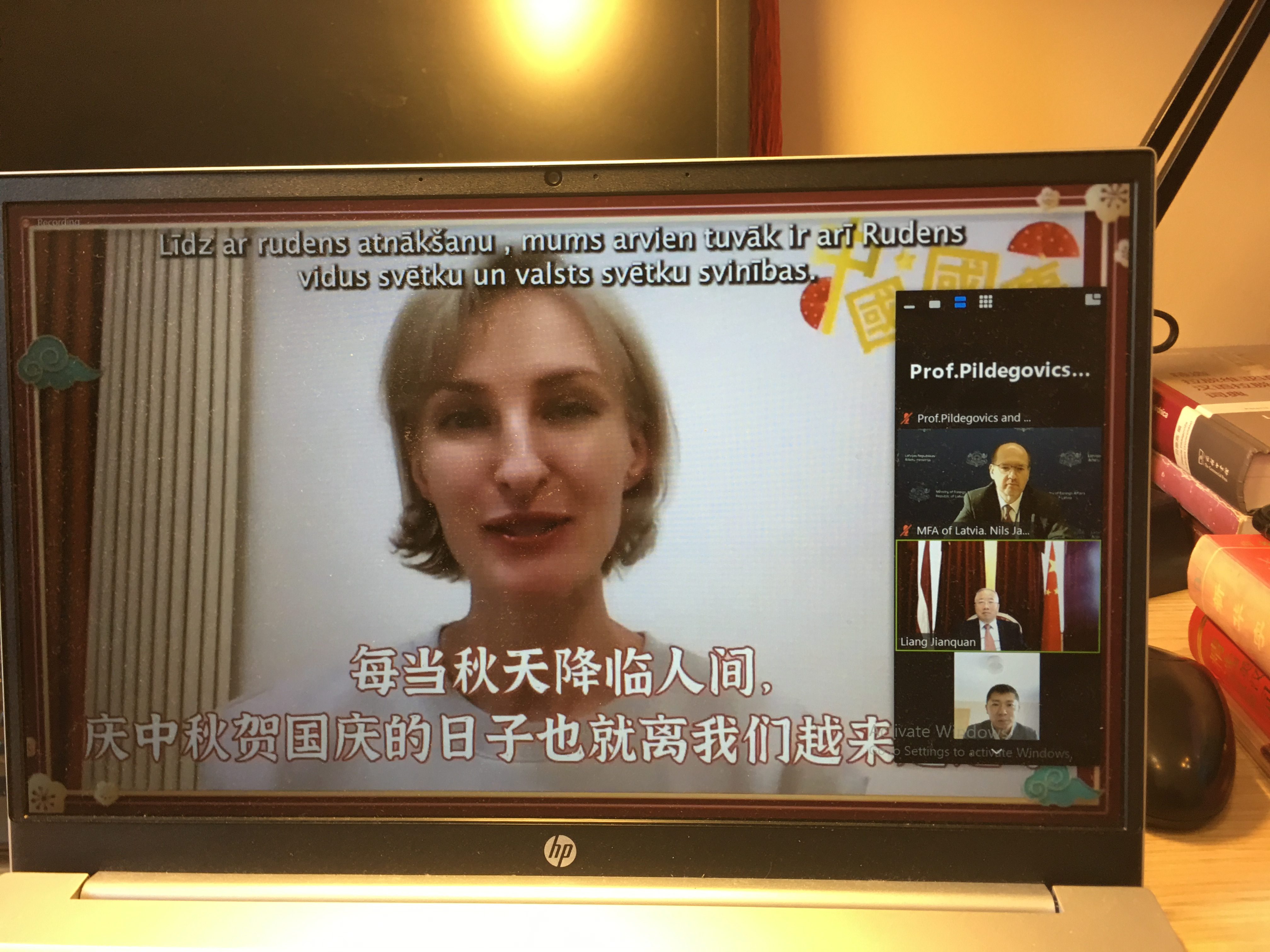2021年9月22日,中国驻拉脱维亚大使馆举办ZOOM线上“庆祝国庆中华人民共和国72周年和中拉建交30周年招待会”,拉脱维亚大学孔子学院两位院长应邀参加庆祝活动。