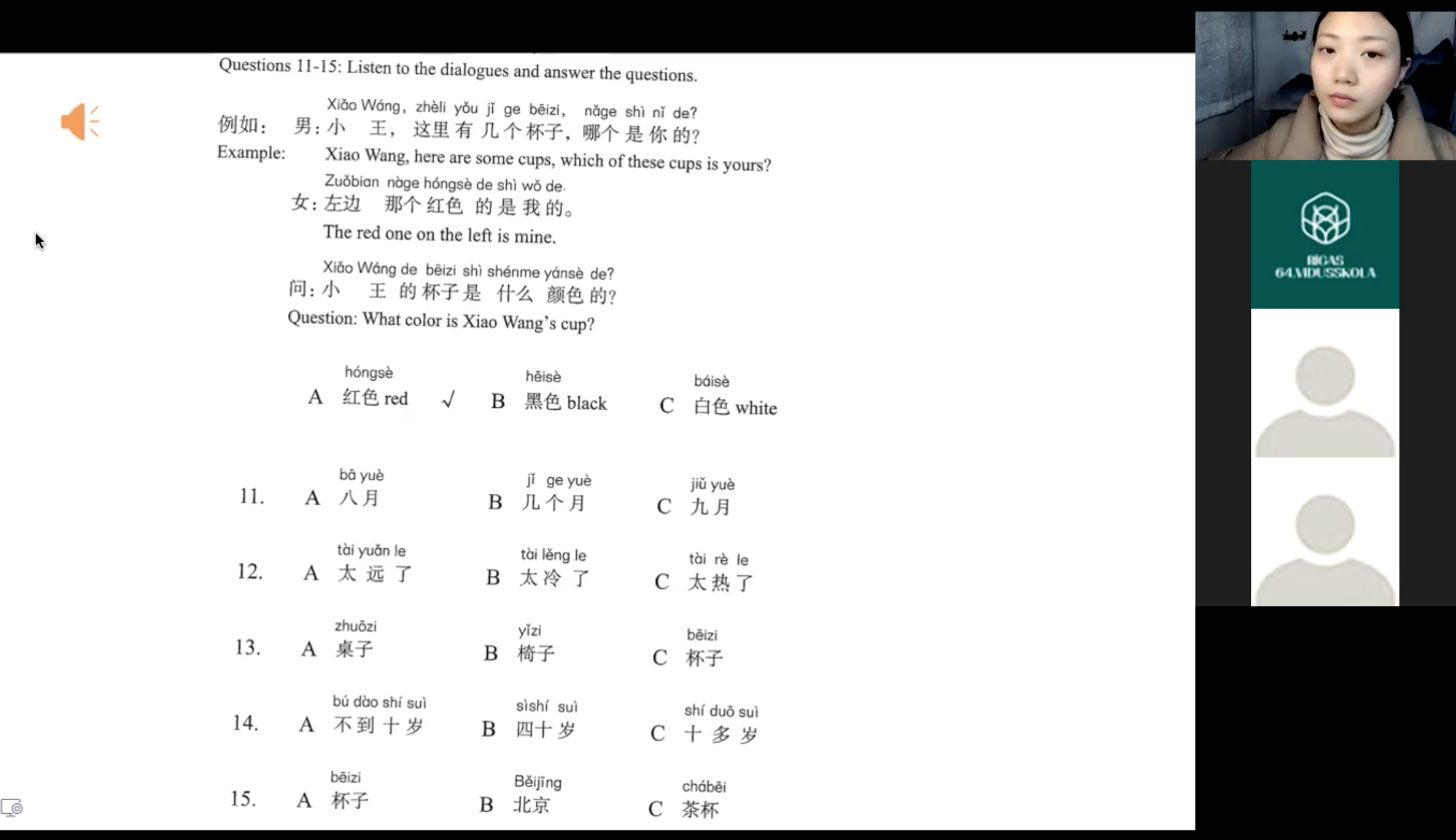 小测验开始前,汉语教师唐静表达了即将结课的不舍,师生互相祝愿“圣诞节快乐”。简单地介绍测验目的和要求后,学生们虽觉得有挑战,但也跃跃欲试,有学生选择打开摄像头认真作答,5秒倒数后,测试正式开始。