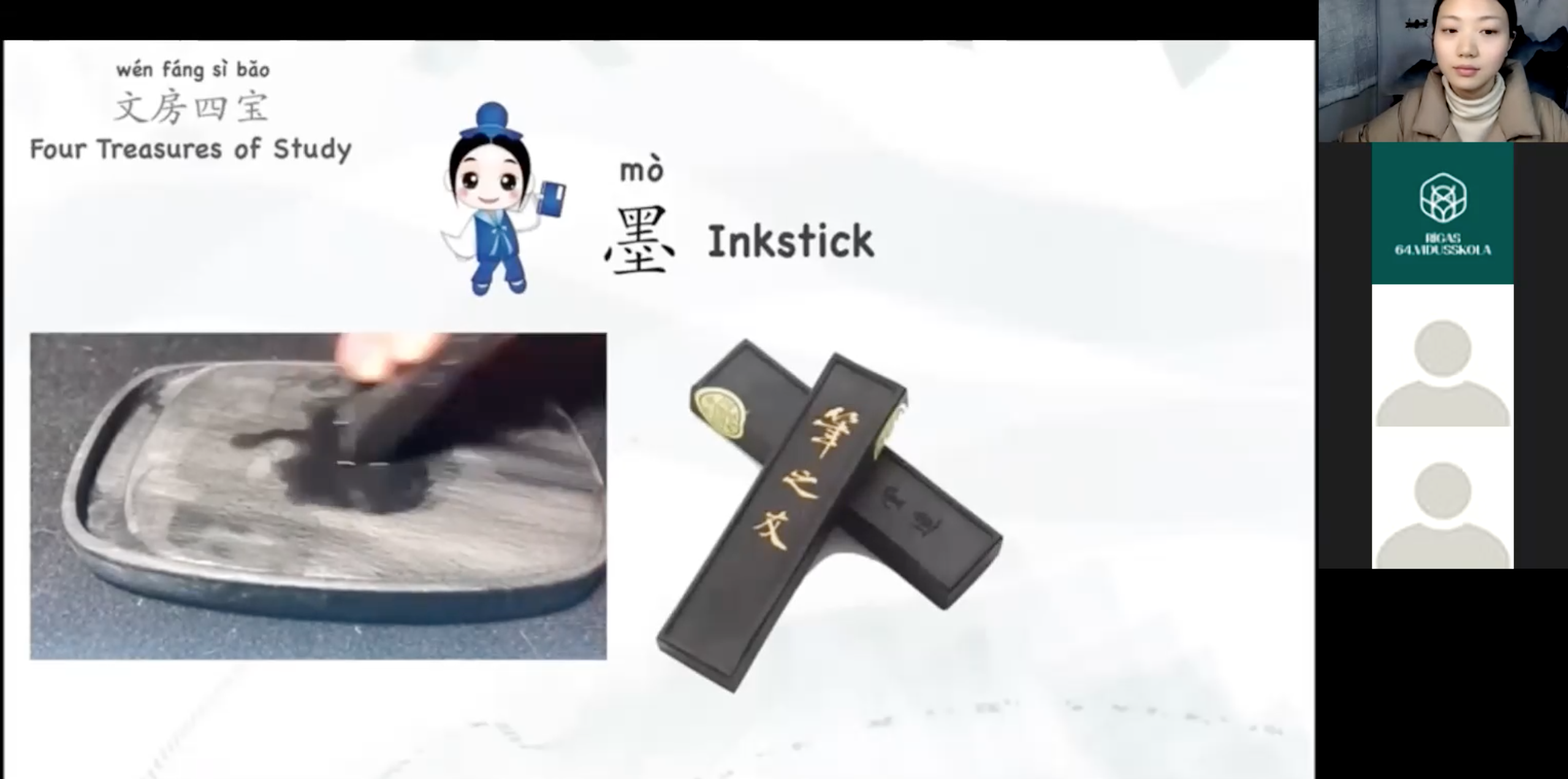 接近尾声时,汉语教师以学生作答的纸和笔作为导入,用视频展示中国“文房四宝-笔、墨、纸、砚”的最初制作过程,学生对其表示惊讶和好奇。最后,师生热情告别,一声声“再见”是对汉语课的暂时告别,也是对新学期新开始的美好期待,下学期见!