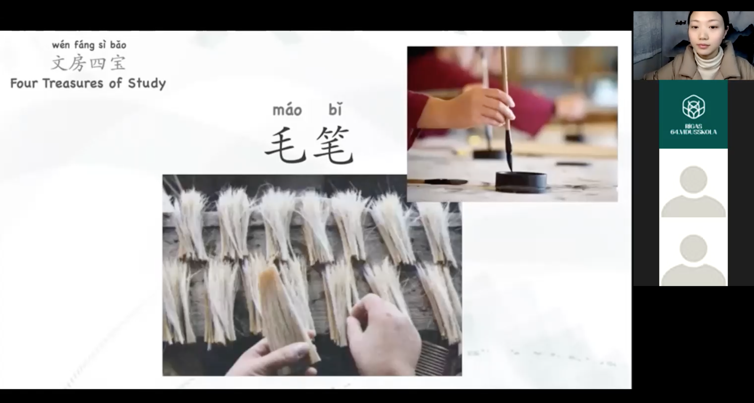 Towards the end, the Chinese teacher took the paper and pen that the students used as the introduction and showed the initial production process of China’s “four treasures of study – pen, ink, paper and inkstone” by video. The students were surprised and curious about them. Finally, the teacher and students bid farewell warmly. “Zài Jiàn ” is a temporary farewell to Chinese class and a good expectation for the new semester. See you next semester!