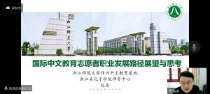 浙江师范大学包亮老师从分析国际中文教育志愿者群体特征出发,提到志愿者处于职业生涯开始阶段,肯定了志愿者具有行动主义特征。谈及国际中文教育总体发展方向,强调我们要共同推动国际中文教育高质量发展的新格局,志愿者要集教学者、研究者、管理者为一体。