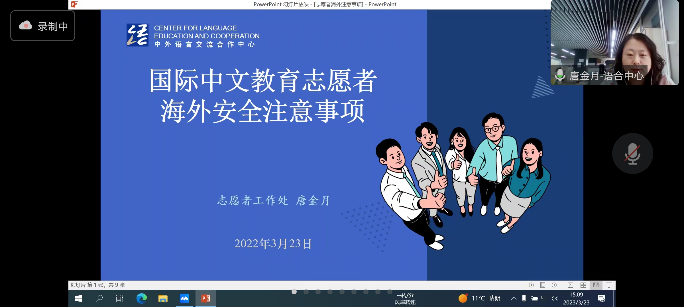 会议中,李韬老师提到境外志愿者尤其需要警惕境外势力的和平演变,分析了境外势力的文化腐蚀途径,介绍了文化侵略的类型以及提出了防范的措施,号召志愿者需要提高防范风险的意识和能力,强化国家安全意识。随后,语合中心唐金月老师从各个实际案例介绍了境外风险及需要规避的情形。