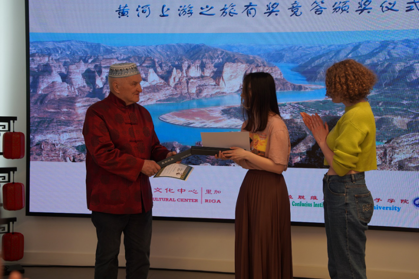 2023年5月19日“黄河上游之旅”竞答活动的颁奖仪式在里加中国文化中心举行。此次竞答共有6名中文学习者获得优秀奖,拉脱维亚大学孔子学院拉方院长贝德高教授为到场的获得者颁奖。参与奖的获得者共27名,里加中国文化中心王楠主任为到场的获奖者颁奖。拉脱维亚大学孔子学院中方院长尚劝余教授为积极在此次竞答活动中给予学生帮助的白冰玉、卡琳娜、唐静老师颁发特别“园丁”奖,为李欣、邵月园、唐璐瑶、徐申、杨宝茹、朱瑜老师颁发“园丁”奖。期待更多的中文爱好者加入到我们今后的活动中。