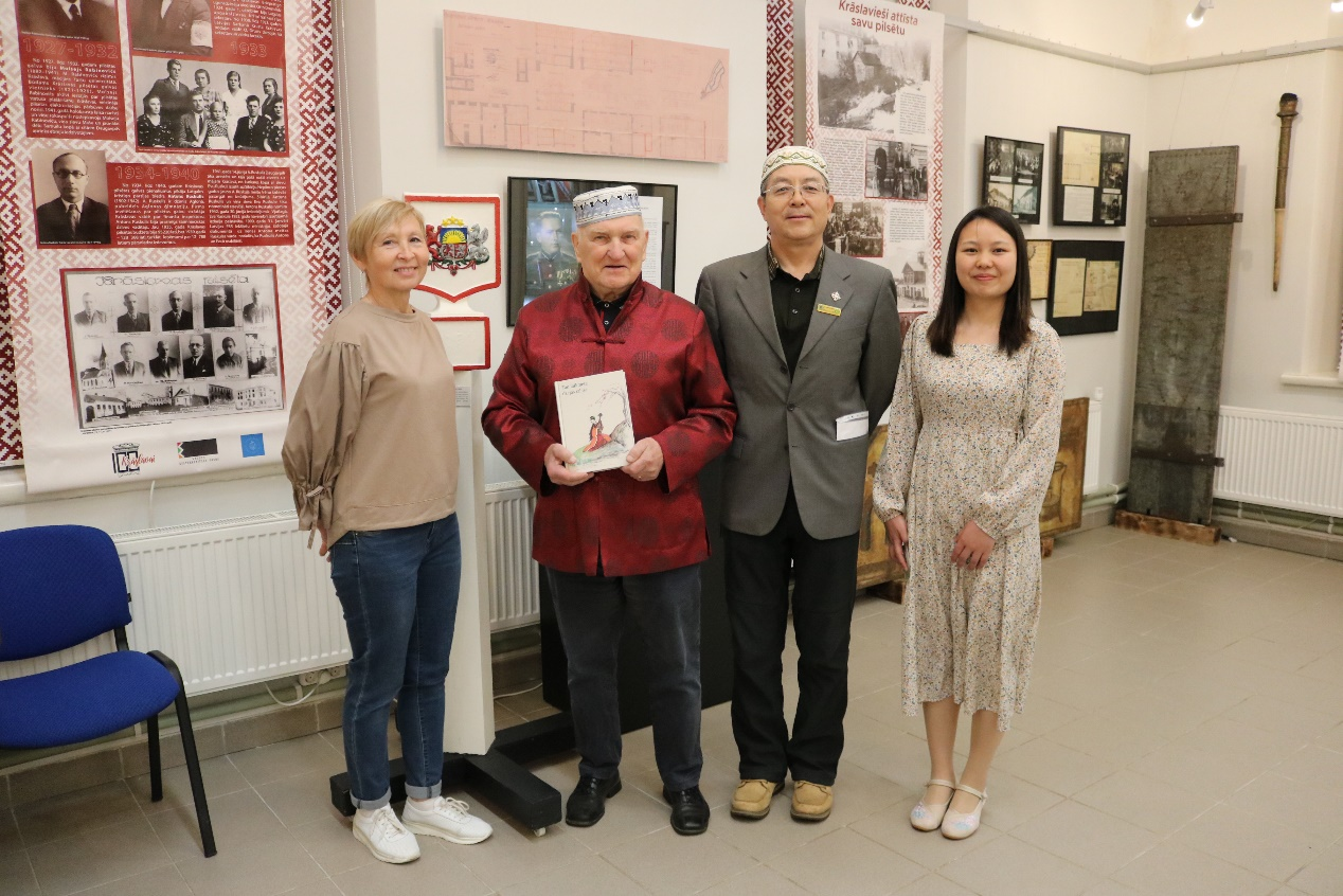 Pirmkārt, profesora Šanga un profesora Pildegoviča vadībā kopā ar ķīniešu brīvprātīgo skolotāju Džu Baiciņu devās uz muzeju dāvināt grāmatas. Krāslavas muzejam ir sena vēsture. Tā tika izveidota tajā pašā gadā, kad Ķīnas Tautas Republika. Muzeja pirmais kurators Ādolfs Pildegovičs bija profesora Pildegoviča onkulis. Krāslavas muzeju viņš izveidoja tolaik samērā sarežģītā vidē. Muzejā ir bagātīgi vēstures resursi un daudz artefaktu, kas pilnībā parāda Krāslavas attīstības procesu. Darbinieku vadībā grupa apmeklēja Krāslavas muzeju un atstāja muzejā savus laba vēlējumus.