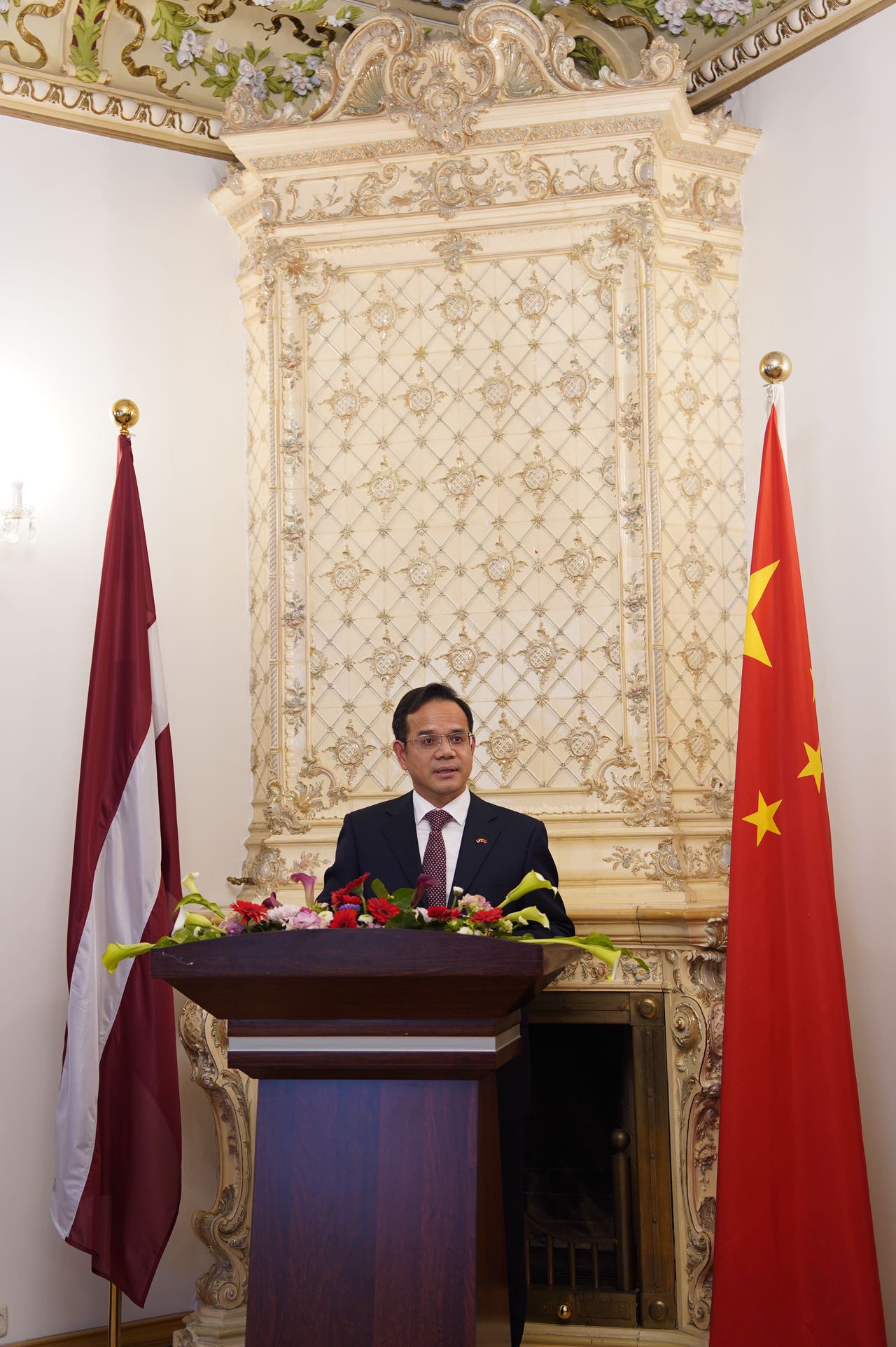 At the beginning of the reception, Ambassador Tang Songgen of the Chinese Embassy in Latvia delivered a speech to welcome all the guests. Then, Professor Shang Quanyu, Director of the Confucius Institute at University of Latvia, Professor He Dong, Director of the Confucius Institute at University of Latvia, teacher representative Bai Bingyu, international student representative Yang Jintao, Beijing International Studies University Latin teacher Ms. Dace Ratniece, Latvian Alumni Association in China President Karina spoke separately. Finally, Minister Counselor Song Danhui of the Chinese Embassy in Latvia made a concluding speech, wishing all the teachers who are committed to education in China and Latvia a happy Teacher’s Day.