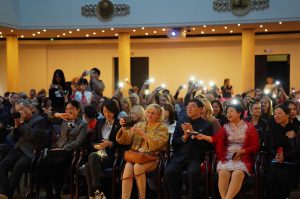 紧随其后的文艺演出更是将现场的氛围推至高潮。节目形式多种多样,武术、舞蹈、歌曲、古筝、黑管纷纷登场。拉脱维亚武术协会的舞狮表演和武术套路表演让现场观众热血沸腾,拍手叫绝;何东院长和本土汉语教师马笑笑倾情献唱的《花儿为什么这样红》,曲风雄浑,充满异域风情;孔院学生早星和小滴带来的舞蹈《醉》仿佛让观众目睹了“起舞弄清影”的嫦娥仙子,沉醉其中。此外,留学生代表和心乐合唱团分别演绎了动听的中文歌曲和拉文歌曲《朋友》《Tu saviļņoji mani》等。值得一提的是,玛利亚和父亲倾情演出了《来生愿做一朵莲》的中文歌舞,令人感动。最后,庆典在大合唱《但愿人长久》的曼妙歌声中圆满落幕。
