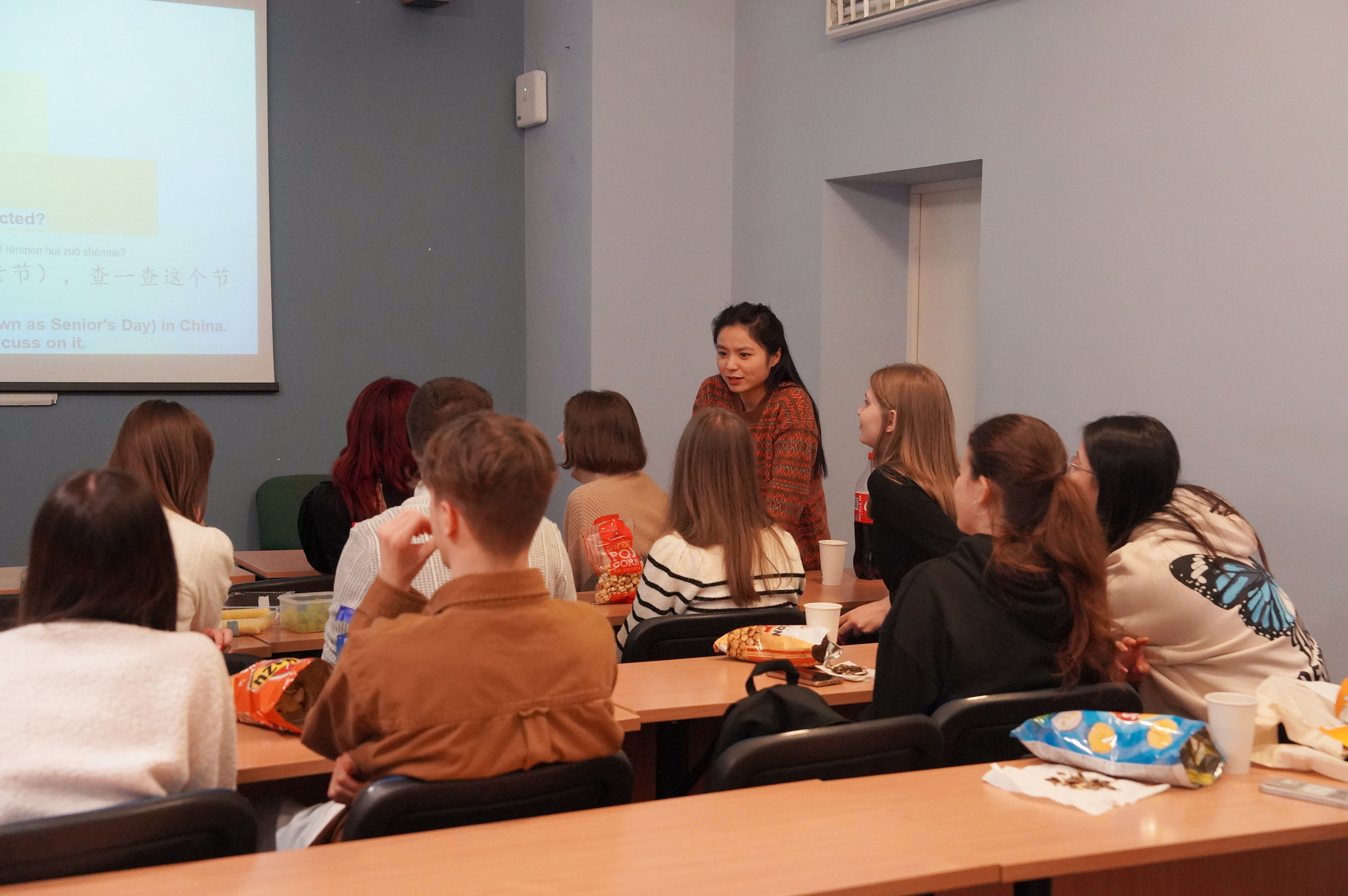 Following the screening, attendees engaged in lively discussions about the conflicts in family values between Eastern and Western cultures, cultural differences in marriage and funeral customs, and the recent celebration of the Chinese Double Ninth Festival-Chongyang Festivel, which featured prominently in the film. Many students enjoyed the film, giving it high ratings of 8 to 10, expressing their appreciation for its thought-provoking content.