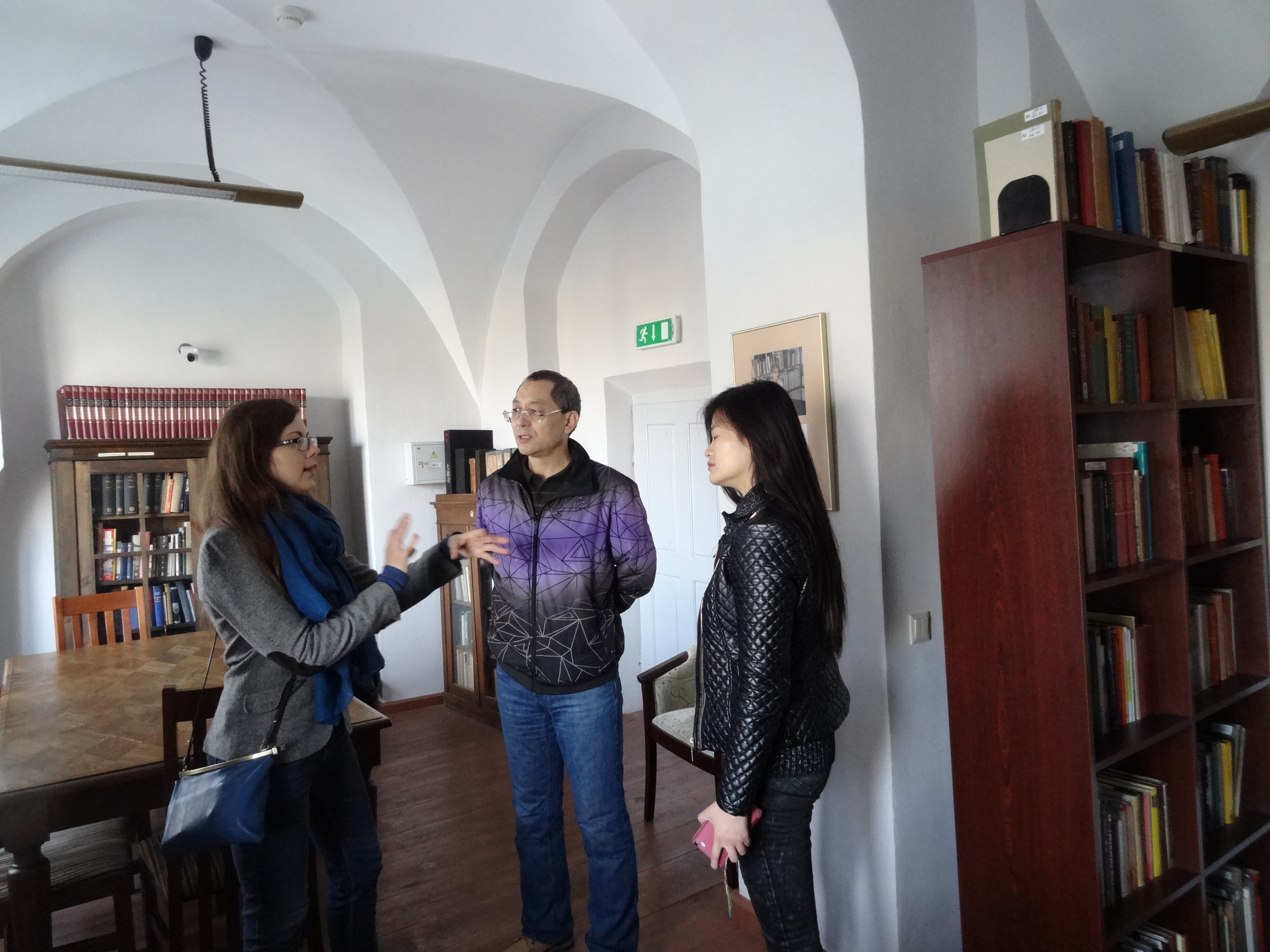 2014年11月17日,拉脱维亚大学孔子学院中方院长尚劝余教授和董芳老师一行访问了立陶宛维尔纽斯大学孔子学院。访问期间,拉大孔院一行参观了维尔纽斯大学孔子学院办公室、教室、语音室、图书室、礼堂以及维尔纽斯大学东方研究中心图书馆,并与维尔纽斯大学孔子学院中方院长张东辉教授、项目经理魏丽玛女士、公派教师薄淑艳老师进行了深入交谈。双方就如何更有效地推进汉语教学与文化活动以及2015年文化活动合作意向等事宜进行了探讨,希望借此加深了解,互相学习,推动进一步交流与合作。