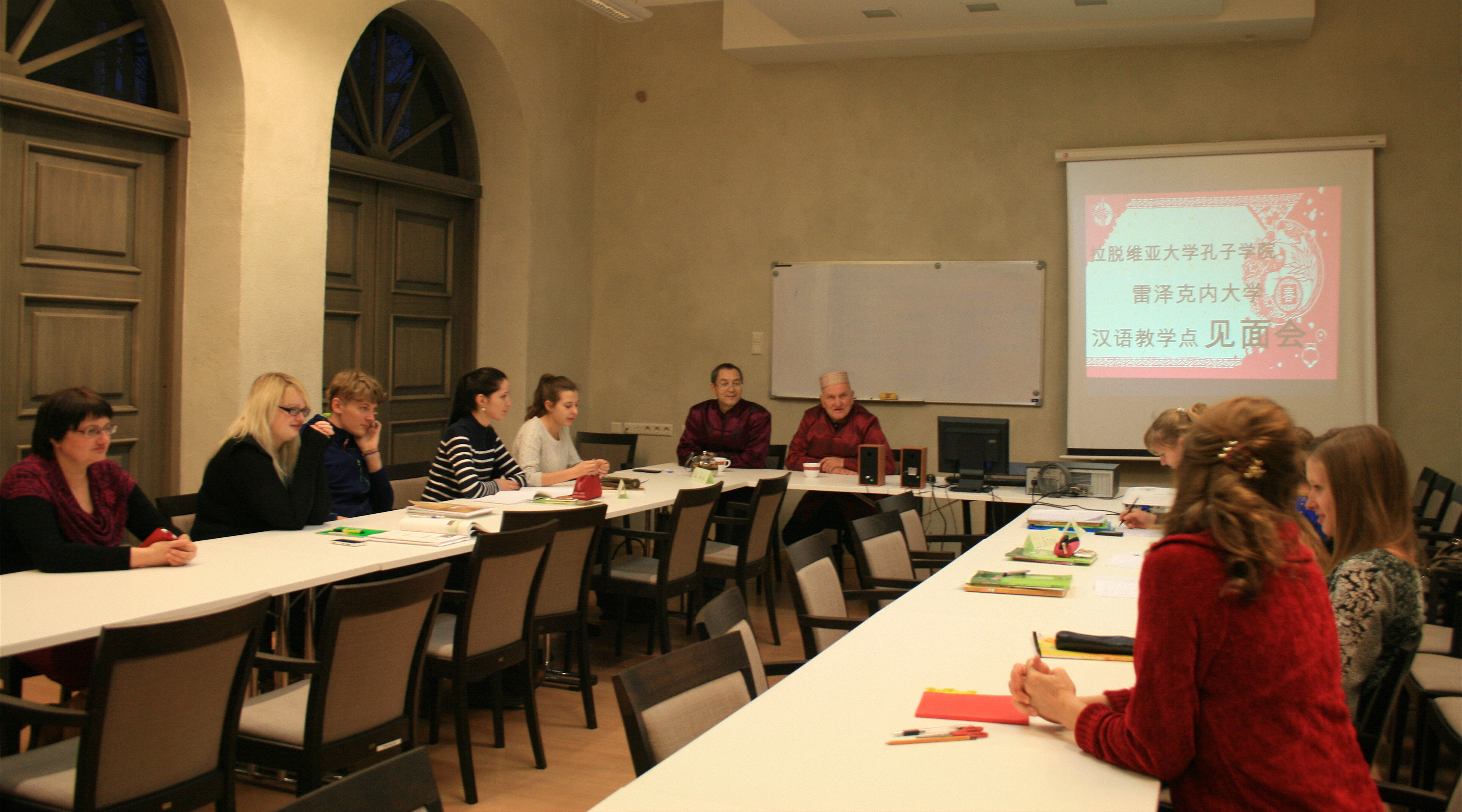 2014年11月19日,拉脱维亚大学孔子学院中方院长尚劝余教授和拉方院长贝德高教授来到拉脱维亚大学孔子学院汉语教学点雷泽克内大学进行视察讲座。雷泽克内大学负责对外关系与发展的副校长Gunars、继续教育中心主任Iveta和两位院长及孔院汉语志愿者教师王树蕙进行了会谈。会议涉及对雷泽克内大学汉语教学点目前汉语教学情况的反映、汉语教学点的宣传及未来建立孔子课堂的筹划准备工作。随后两位院长在雷泽克内大学副校长的带领下参观了雷泽克内大学的新教学楼以及图书馆、实验室等教学设施。