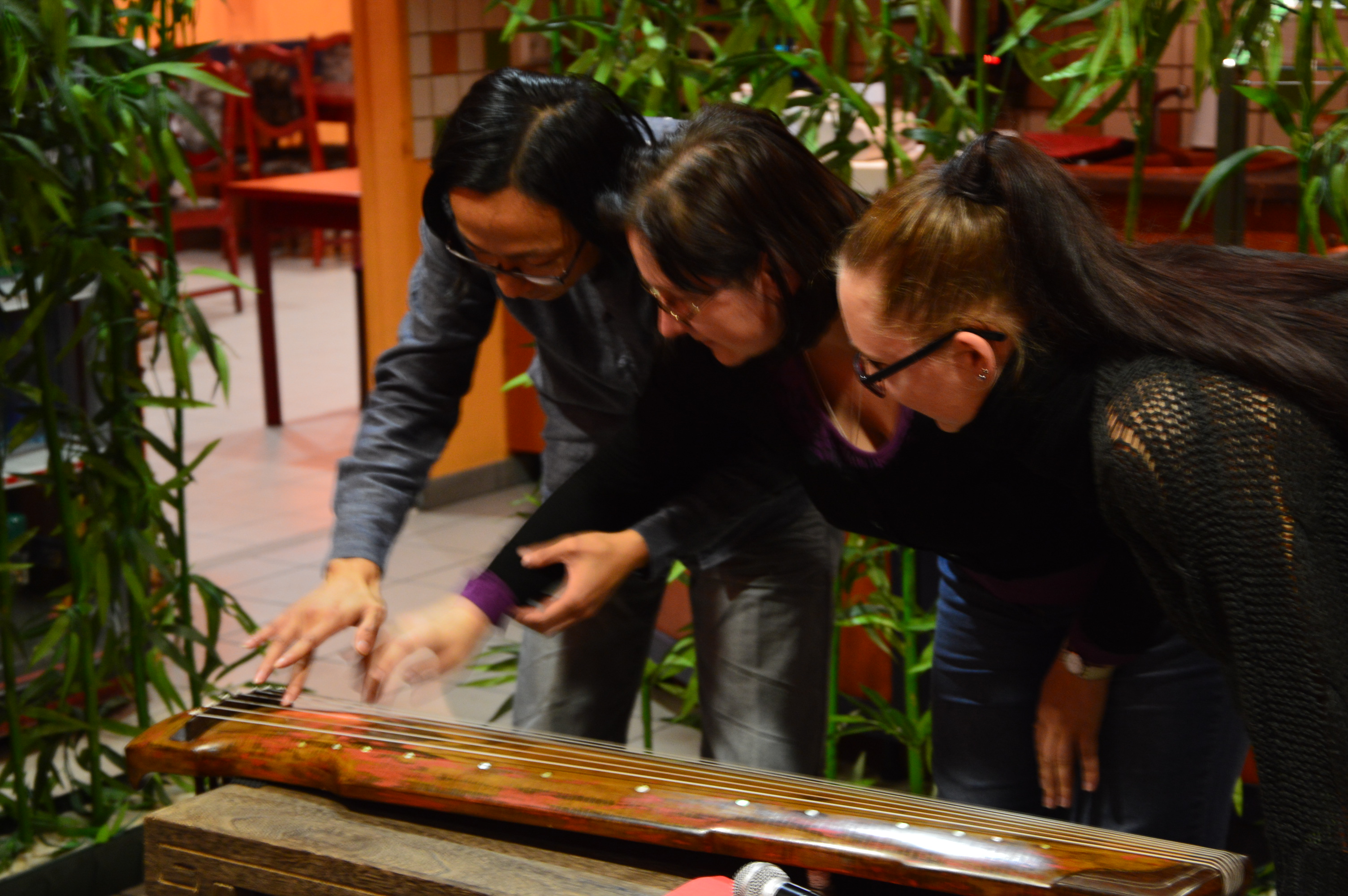 汉语角活动已经在长城饭店举行过多次,它为想要学习中文的年轻人提供了一个练习口语、交流中拉文化的平台。很多拉脱维亚的学生在这里不但有效地提高了自己的汉语水平,而且也结交到了不少中国朋友。这次的专题活动是以讲座和观摩为主,田泉先生在1个多小时的时间里和师生们分享了蕴含在中国古琴中的精神气质。同学们都聚精会神地倾听了艺术大师讲解的古琴知识。讲座结束之后,学生们纷纷围拢古琴,试着弹奏起来,并用不太流利的汉语询问各种问题。作为“琴棋书画”之一的中国古琴艺术,历史文化悠久,也是古代文人的必修课之一,但现在在国内学习的古琴的人越来越少,它也已经成为了非物质文化遗产保护对象之一。所以能够有机会在拉脱维亚听到这种几乎快要失传的艺术,学生们都感觉特别有意思。